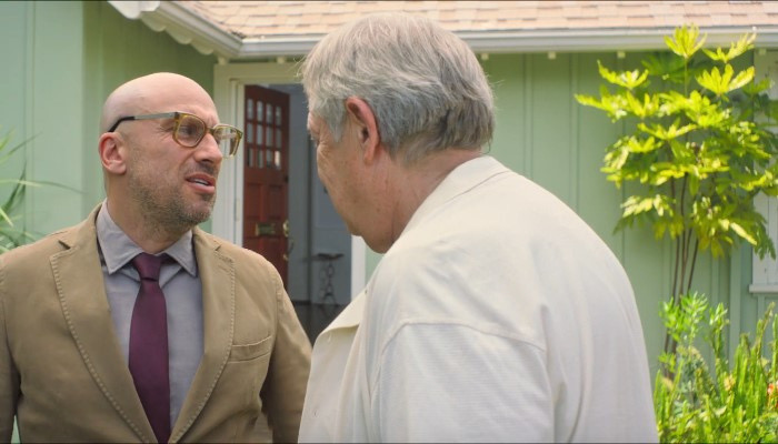 Какая-то линия послабее (про беременную Юлю и гефилте фиш), какая-то посильнее (русский дедуля и армянин с фиктивной женой), поэтому фильм, выдерживая баланс, как канатоходец, все-таки двигается вперед. Чуть завалился в одном месте, чуть накренился в другом, но не падает и не разбивается. Божечки-кошечки, там можно даже найти внутренний конфликт, когда герой Гранта Тохатяна расписывает фиктивной жене все прелести Еревана и получает в лоб закономерный вопрос: «Тогда чего ты лезешь из кожи, чтобы остаться в Лос-Анджелесе, а не едешь домой, раз там так здорово?». А когда ты уже поставил крест на теме с Юлей и этой несчастной рыбой, тебя вдруг угощают чудной зарисовкой о трех еврейских поварах, разыгранной Ольгой Тумайкиной, Семеном Трескуновым и Семеном Стругачевым. Определенно, этому трио надо больше места, но сдается, все в этой сцене держится на импровизации отличных актеров.