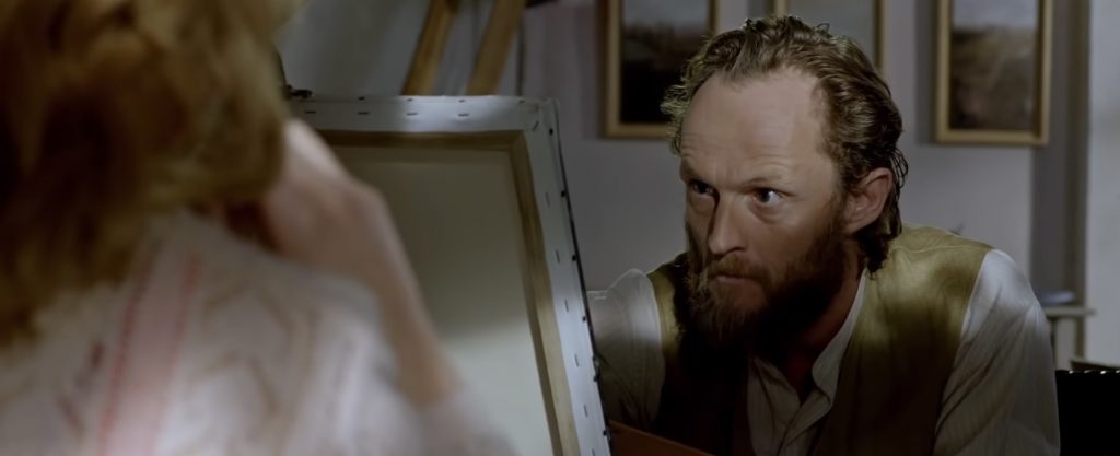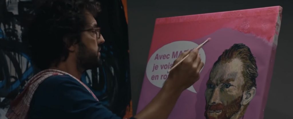 ВПЕЧАТЛЕНИЯ И АКТЕРЫ: и название фильма, и его постеры старательно намекают зрителю, что перед ним романтическая комедия. Сюжет этому тоже вполне соответствует: к середине картины между Лео, Элизой и Винсентом Ван Гогом образуется классический любовный треугольник. Неожиданность заключается в том, что романтическое и комическое здесь друг от друга отделены. Главным объектом шуток становится современное искусство. Официальный прием в честь открытия персональной выставки Лео в Париже - это парад человеческой глупости. Напыщенные богачи восхищаются надувным китайским единорогом, бессмысленной инсталляцией из вентиляторов и картиной, в которой к великому «Сотворению Адама» Микеланджело пририсован мобильный телефон. Тут, кстати, авторы фильма иронизируют над конкретными художниками: единорог - очевидная отсылка к «Собаке из воздушных шаров» Джеффа Кунса, а полотно с мобильником напоминает работы Дэйва Поллота, который вставляет поп-культурные образы в классические шедевры.
