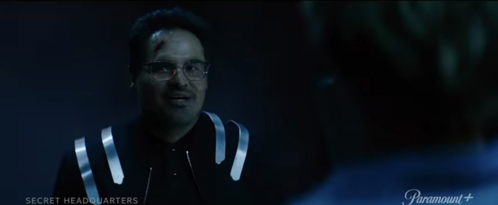 Более-менее логичным на этом фоне выглядит мотивация главного злодея, которого сыграл комедийный актёр Майкл Пенья (тот самый, что отдувался за шутки в «Человеке-муравье»). Его персонаж, бизнесмен Ансель Аргон - типичный оружейный магнат, который делает деньги на госзаказах, и новый источник энергии для него - потенциальная золотая жила. Пенья здесь постоянно шутит, иногда даже смешно, но вот финальное противостояние со Стражем выглядит до абсурдного нелепо. Не говоря уж о таких штампах, как костюм злодея отличается от костюма героя только зловещим красным цветом лампочек в нём. (Сергей Прудников)