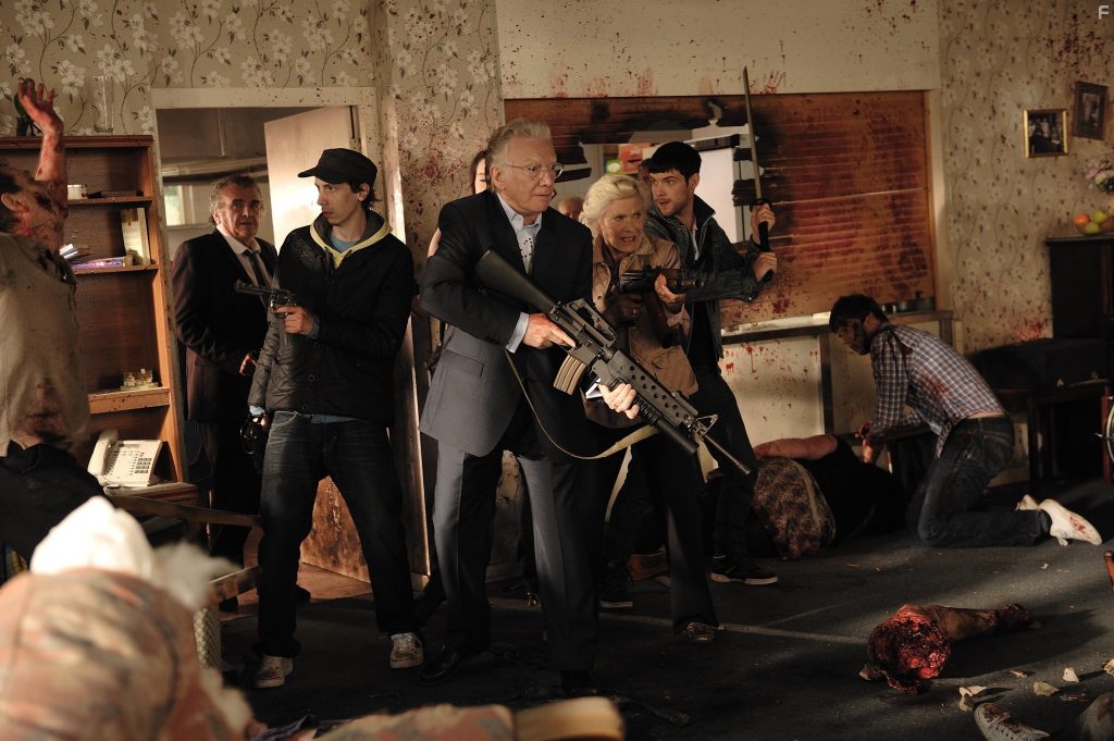О ЧЕМ КИНО: рабочие на стройке раскопали какой-то старый склеп и зомби заполонили пригороды Лондона. Два брата-кокни решили выручить своего дедушку, ветерана войны, а теперь директора приюта для престарелых (Алан Форд – «Большой куш», «Карты, деньги, два ствола»). Приют через пару недель закрывают из-за недостатка денег и ребята, безо всяких интеллигентских заморочек, решают ограбить банк. В компанию к ним присоединяются оторва-кузина, лихо стреляющая из любого оружия и умеющая заводить машину без ключа, их приятель – жирный озабоченный девственник и афроангличанин, владелец целого склада оружия в гараже! Улов в банке оказался больше, чем ожидалось: вместо 10 тысяч фунтов – целых 2,5 миллиона плюс два заложника в придачу - писклявая грудастая блондинка в мини-юбке (мечта английского тинейджера) и зануда-клерк. На выходе команду встретила целая толпа зомби, причем своей неповоротливостью и, я сказал бы так, безобидностью, эти зомби напомнили своих сородичей из игры Left4Dead. Что говорить, если в одной из самых смешных сцен фильма они не могут догнать пенсионера на ходунках! А грудастая раздухарившаяся пискля кромсает их штыковой лопатой, как опытный сенокос во время страды! Хотя директор приюта и сказал: «Никто не придет нам на помощь! Мы пенсионеры и должны сами о себе позаботиться!», братья решают помочь деду, причем направляются в приют на рейсовом двухэтажном автобусе.