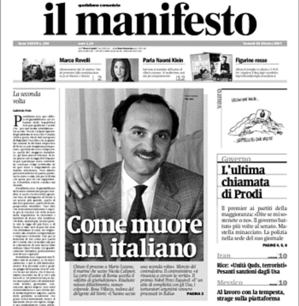 18 января 2006 года стало известно, что итальянская прокуратура решила предъявить Лосано обвинение в преднамеренном убийстве. Но, несмотря на более чем двадцать официальных запросов в США, им отказали в официальном опознании Лосано. 25 октября 2007 года итальянский суд отклонил обвинения против Лосано, определив, что коалиционные силы в Ираке находятся под исключительной юрисдикцией страны, которая их направила. Смерть Калипари спровоцировала один из самых серьезных дипломатических инцидентов между США и Италией со времен окончания Второй мировой войны….