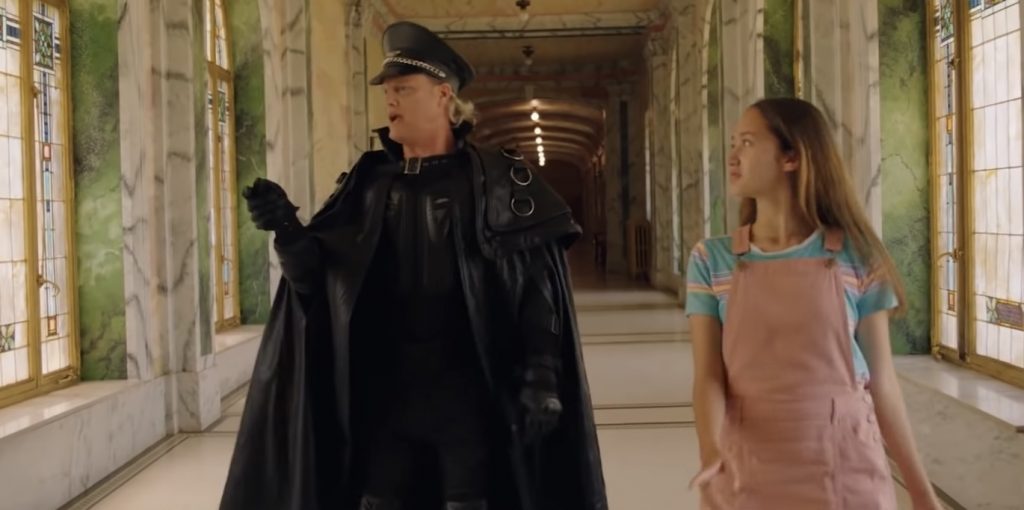 В фильме «Агент-обезьяна» все это присутствует в полном объеме - роскошные локации, светлая картинка, улыбчивые главные герои. Даже Альфа-Дог (Скип Швинк) или же Дэн, вопреки словам начальника из ЦРУ: «Все плохие парни грустные по определению», постоянно лыбится. Вообще-то его мотивация к совершению плохих дел выглядит примерно как у почтальона Печкина («Почему я злой был? Потому-то у меня велосипеда не было»). После смерти своей жены он решил отомстить всему миру, совершенно не занимается своей дочкой Ребеккой (Мэдлин Кинтц) и проводит время с экзотичными злодеями. Яйцеголовый (Ахель Розарио мл.) явно косит под Snoop Dogg. Супер-Злодей напоминает индуса и обладает третьим глазом во лбу, поэтому носит солнцезащитные очки с тремя линзами. Королева Зла (Леа Филпотт) одевается по моде IXX века и постоянно критикует еду во дворце Альфа-Дога. Его дочке тоже не нравятся эти блюда с французскими названиями и надоевшие лобстеры. Поэтому когда ее папа вдруг становится хорошим, они решают на ужин съесть картоху с курицей и мороженое с фисташками. Нравится еда только шеф-повару - он успокаивается, пожирая пирожные собственного производства. Доктору Коварство тоже интересны кулинарные темы - он собирается изобрести оружие, стреляющее горячим кофе и армию роботов-морских свинок (матросы их раньше ели, если кто не в курсе).
