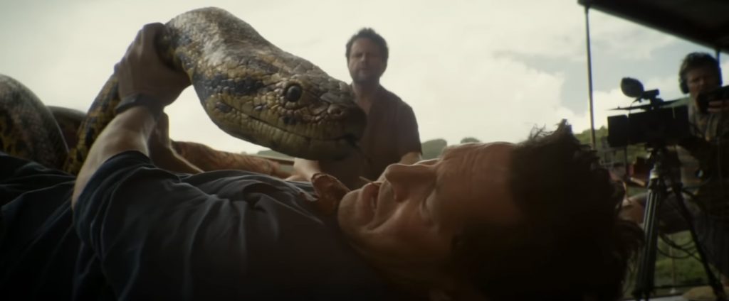 На бумаге такой подход к «Анаконде» предполагает многообещающее повторение, спустя четыре десятилетия, сюжетов, подобных тем, что мы видели в «Супер 8» (2011) или «Сыне Рэмбо» (2007). Эти релизы воспевали юных киноманов, имеющих доступ к базовому кинооборудованию. Томми Гормикэн нашел настолько интуитивный постмодернистский ракурс, что сразу же вспоминается другой фильм с Джеком Блэком - «Перемотка» Мишеля Гондри. В нем работники видеопроката делали причудливые ремейки любимых фильмов детства, имея ограниченные средства. Это типичная «кайфовая» концепция, которую группа обкуренных чуваков могла бы обсудить в подкасте (как Кевин Смит выдвинул идею для боди-хоррор-розыгрыша «Клык»).  С такой завязкой зрители могут с полным основанием ожидать двух вещей. Во-первых, должно быть забавно наблюдать, как эти болваны пытаются снять профессионально выглядящий фильм, особенно если им приходится иметь дело с неожиданно появившейся анакондой. И во-вторых, мы хотим увидеть конечный результат, который должен быть настолько плохим, что это будет даже смешнее, чем оригинальная «Анаконда». Но, похоже, Гормикэну досталась несколько иная задача, менее ориентированная на юмор: его «Анаконда» всё ещё должна функционировать (хотя бы частично) как фильм ужасов. А это значит, что студия ожидает нескольких по-настоящему напряжённых сцен, и как минимум несколько персонажей должны быть съедены.