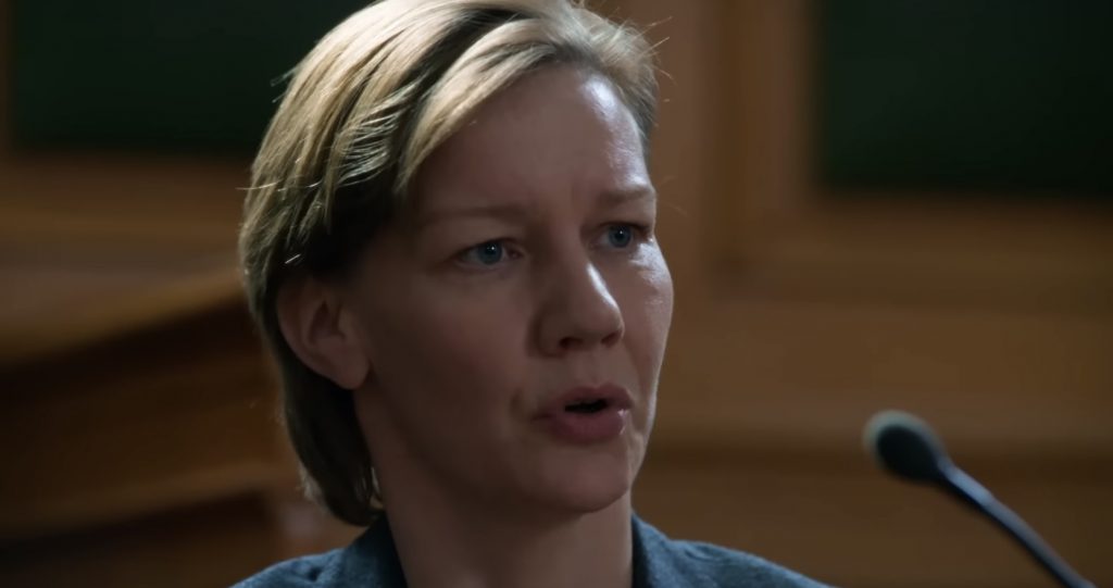 Трие выбрала тот формат детектива, где публике известно столько же информации, сколько и самим героям. В «Анатомии падения» она развивает историю постепенно, обоснованно использует всего лишь пару флешбэков и не держит зрителя за дурака, как это делают в экранизациях романов про Шерлока Холмса и Эркюля Пуаро, в которых следователи обо всем догадываются первыми. Авторка оставляет интригу до конца, следуя словам адвоката Венсана (Сванн Арло), утверждающего, что в суде нужно не представить правду, а честно рассказать свою теорию происшествия. Во время заседаний Сандра не столько делится ценными фактами, сколько рассказывает о чувствах - для нее они важнее, они и есть та истина, за которую стоит бороться.