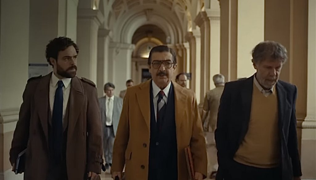 Режиссер Сантьяго Митре очень кропотливо восстанавливает картину общества, оказавшегося в моральном кризисе после войны и диктатуры. С глубокой иронией и эмпатией он показывает молодых людей, которые за время правления хунты были вне политики, считали, что выборы бесполезны. Дело Страссеры прежде всего меняет восприятие обществом своей власти и конституции. Если ты совершил преступления - ты за них ответишь. И львиная доля размышлений героев фильма, замечательно сыгранных аргентинцами Рикардо Дарином и Питером Ланзани, посвящена самой идее справедливости и личной вины в произошедшем. Прокурор Страссера тоже персонаж непростой, даже трагический. Он все прекрасно понимал про эту власть, и нередко ему приходилось совершать то, о чем он теперь жалеет. Пойдя же против бывшей хунты, он прежде всего ставит под удар свою семью, да и ему самому начинают чудиться заговоры за спиной. Уже немолодой Страссера будет биться до конца, чтобы постараться замолить собственные грехи перед людьми.