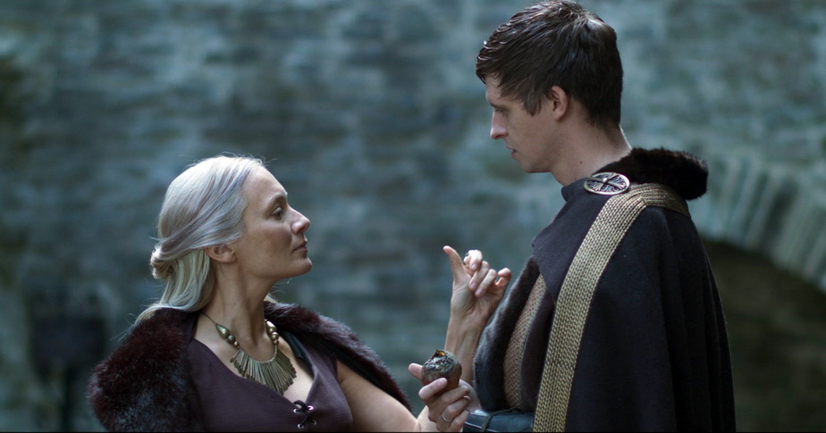Незаконный сын Артура, Модред (Джоэл Филлимор) совершенно не похож на отца внешне и выглядит как 17-летний участник X-фактора. У него есть проблемы с папашей и sexy-мачехой Гвиневрой (Стелла Стокер), которой он не столько хочет обладать сколько видит инструмент для придания легитимности своей власти. Он жадный, неряшливый и одновременно очень опасный. Сцена, когда Модред ставит оставшихся в королевстве рыцарей перед выбором - сохранить верность Артуру или умереть, впечатляет.