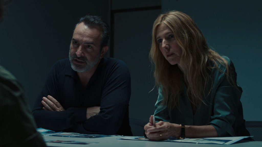 Поэтому режиссер и на секунду не упускает из вида Фреда (Жан Дюжарден), его коллегу-агента Инес (Анаис Демустье), а также офисных работников Элоизу (Сандрин Киберлен) и Марко (Жереми Ренье). Они как сумасшедшие несутся куда-то, чтобы найти двух сбежавших стрелков. А режиссер показывает каждую дверь, которую копы выбивают, каждый телефон, к которому они прикасаются, каждого подозреваемого, которого они допрашивают, и каждую ложную зацепку. И все это запечатлено камерой оператора-постановщика Николя Луара, которая, кажется, навечно закреплена в установке Steadicam.