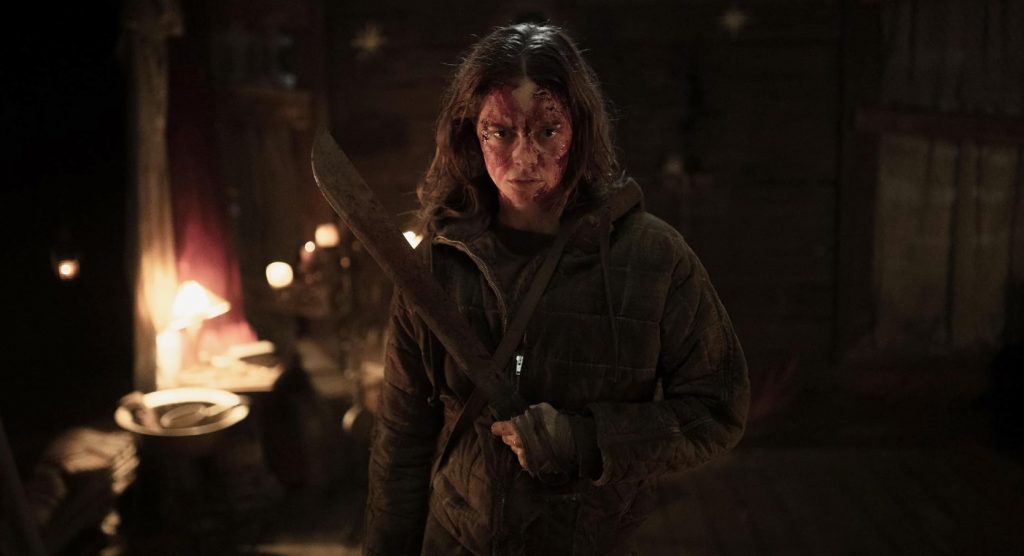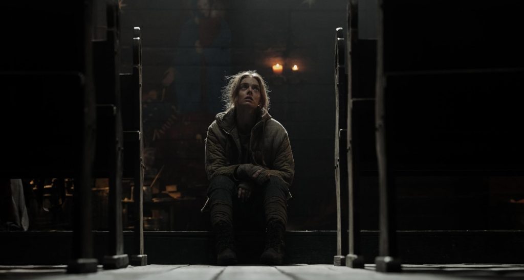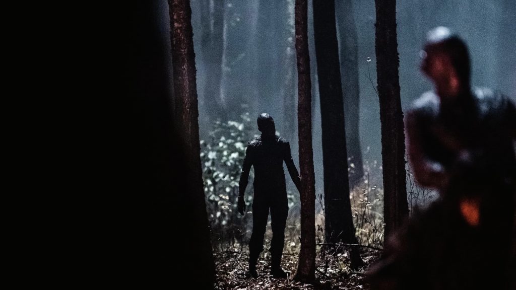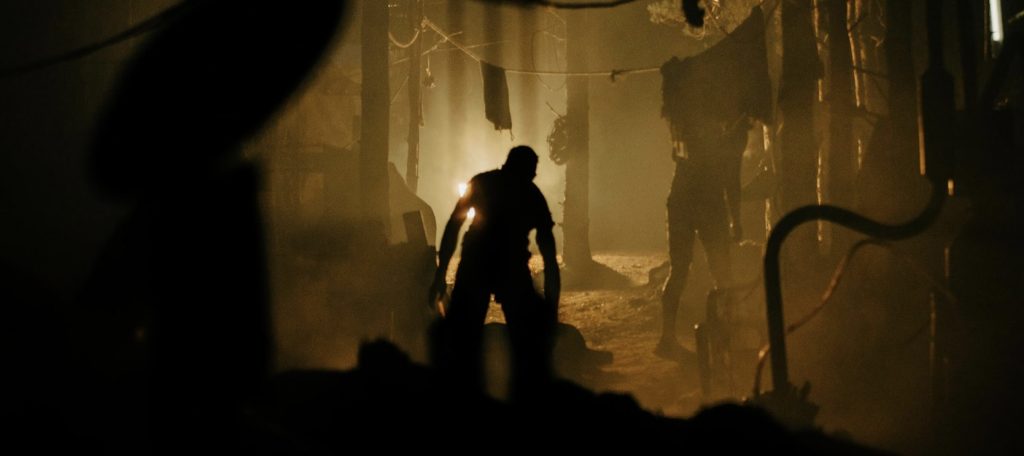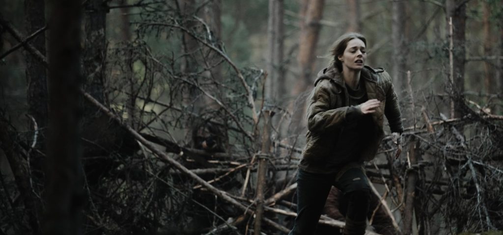 Среди всего этого хаоса пытается выжить главная героиня по имени Азраил (Самара Уивинг), которую мы впервые встречаем резвящейся в лесу с неким парнем (Натан Стюарт-Джарретт). Их тут же начинает преследовать стая похожих на монахов приспешников, которые связывают девушку и пытаются принести ее в жертву одному из лесных монстров, пьющих гемоглобин. Но Азраил удается сбежать - что она делает почти в каждой сцене а затем направляется в небольшое сообщество, живущее в стиле «Безумного Макса» среди колючей проволоки и ржавых старых автомобилей (они каким-то образом имеют доступ к перезаряжаемым светодиодным фонарям). Все эти люди зачем-то хотят казнить Азраил, побуждая бедную девушку продолжать сбегать, пока она не устанет. Поскольку никто не бормочет ни слова (за исключением одной сцены, где парень внезапно говорит на эсперанто), вы так и не узнаете многого об Азраил или ком-либо еще, а это значит, что вам будет по барабану, что зомби время от времени отрывают людишкам головы и высасывают из них кровь. Тишина - это и главное преимущество фильма, и его главное ограничение, создающее моменты саспенса, но также оставляющее нас в неведении.