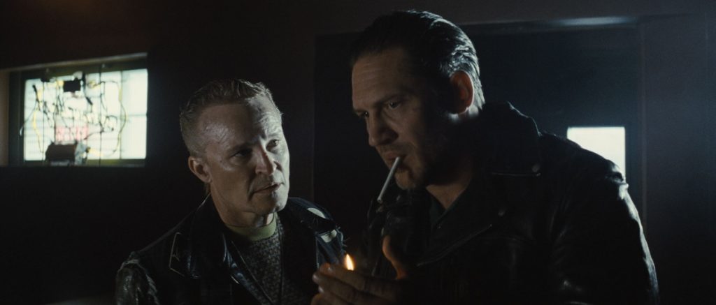 Но, все же, перед нами шоу Тома Харди, во всех смыслах; он постоянно выходит на первый план, с легкостью крадя сцены. Харди остается одним из лучших «недопереигрывающих актеров», сводя игру к минимуму движений и ограничивая голос одним регистром, который никогда не поднимается выше размеренного тона, даже когда он кипит; актер в основном произносит свои реплики нараспев, булькая, что почему-то настолько же нервирует, насколько поначалу обезоруживает. Это виртуозная игра, состоящая из мелких, но легко уловимых жестов; мы всегда осознаём, насколько реален персонаж когда он молча обрабатывает информацию - на самом деле от него трудно оторвать взгляд…