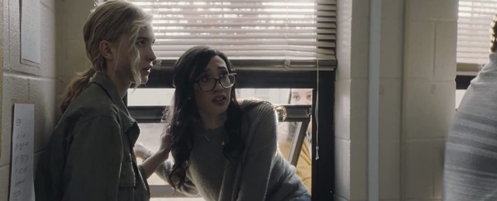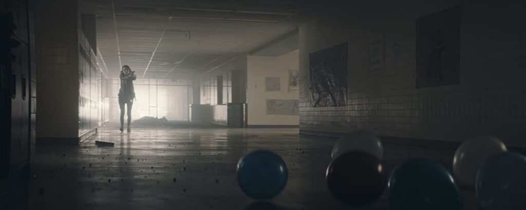 О ЧЕМ КИНО: старшеклассница Зои (Изабель Мэй) живет под надзором отца-ветерана (Томас Джейн), беседует с погибшей матерью (Рада Митчелл), таскает армейскую куртку и успешно стреляет по оленям: не всегда, правда, девушке удается решить судьбу зверя одним выстрелом и приходится пускать в дело большой булыжник. В один из последних школьных дней, проводя досуг в кафетерии, Зои повздорит с приятелем и отправится выпустить пар в туалет. Пока девушка будет жаловаться на жизнь раковине, в кафетерий тараном въедет фургон, груженный четырьмя вооруженными школьными аутсайдерами и несколькими бочками с самодельной взрывчаткой. Зои удастся смыться, но только затем, чтобы предупредить об опасности тех, кто по какой-то причине не слышал ни автоматных очередей, ни грохота въезжающего в стену фургона, а затем вернуться - не столько, чтобы спасти застрявших с юными террористами однокашников, сколько чтобы размазать стрелков в глазах общественности...