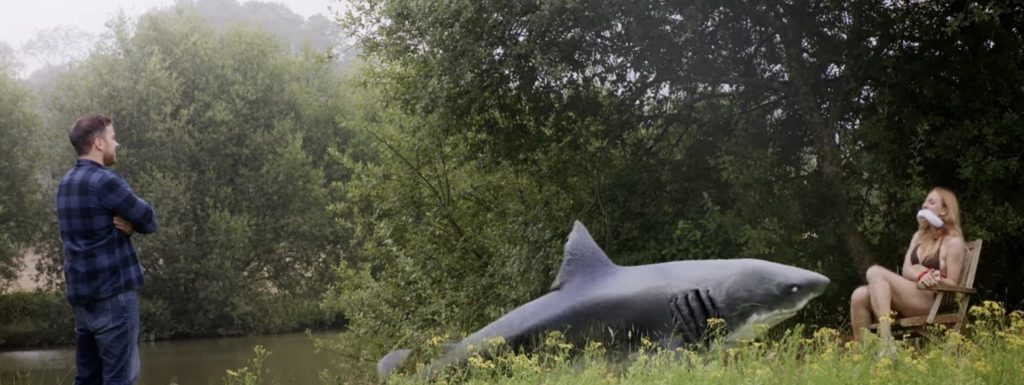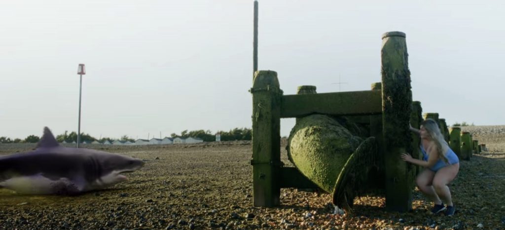 ВПЕЧАТЛЕНИЯ И АКТЕРЫ: завязка фильма Э. Дж. Маршалла столь же забавно странная, как и само название: рехнувшийся модельер создает линию токсичных бикини, скармливает их акулам, и каким-то образом это приводит к тому, что хищники выбираются на сушу и начинают бродить по Эссексу в поисках жертв. Что и говорить, завязка безумная, но она могла бы сработать, если бы фильм в полной мере использовал свою абсурдность. Группа подруг отправляется на выходные за город, и неизбежно сталкивается с этими химически модифицированными, бросающими вызов гравитации акулами. Удивительно, но компьютерная графика не так уж и ужасна, как можно было бы ожидать. Существа плавают немного неуклюже, физика совершенно нелогична, но в целом качество изображения лучше, чем во многих фильмах с таким бюджетом. Когда они появляются, они, по крайней мере, показаны полностью а не по частям, что в современном жанре фильмов об акулах - небольшая победа.