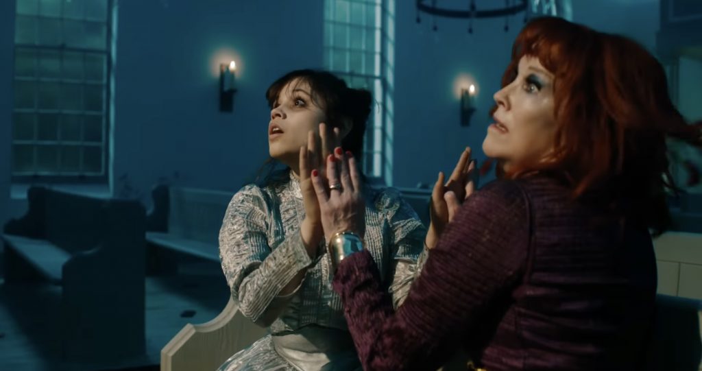 ВПЕЧАТЛЕНИЯ И АКТЕРЫ: смерть в измерении Тима Бертона, как водится, не разлучает, а, наоборот, сближает. Вернуться в Коннектикут и открыть двери старого доброго дома с привидениями семью Дитц побуждает трагедия: умирает хозяин особняка Чарльз. Его супруга Делия (Кэтрин О’Хара) справляется с горем посредством арт-терапии, а внучка Астрид (Дженна Ортега) ушла в учебу и не горит желанием общаться с мамой. Готическая принцесса Лидия (Вайнона Райдер) стала готической королевой, построила карьеру в области спиритических сеансов по ТВ и завела назойливого ухажера-менеджера (Джастин Теру). По ту сторону жизни не менее навязчивую привязанность проявляет и «собранная» дама в черном: эффектная незнакомка (Моника Белуччи) во чтобы то ни стало должна найти Битлджуса. Но отчего-то она не произносит имя дяди в полосатом костюме трижды, чтобы призвать мистера всуе…