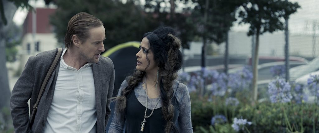 Герои Уилсона и Хайек, сами по себе, образуют странную экранную пару: первый пытается жить как жил даже в этих невообразимых обстоятельствах, а женщина идёт ва-банк. Готовность Хайек воплотить на экране безумную пророчицу вначале раздражает, но по мере развития сюжета и пояснительных диалогов, её энергия не даёт заскучать во время просмотра…