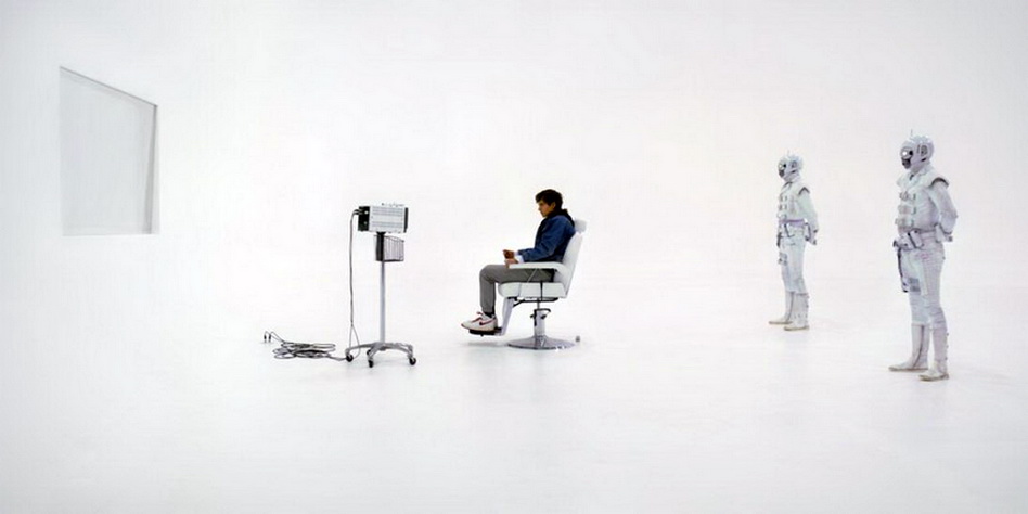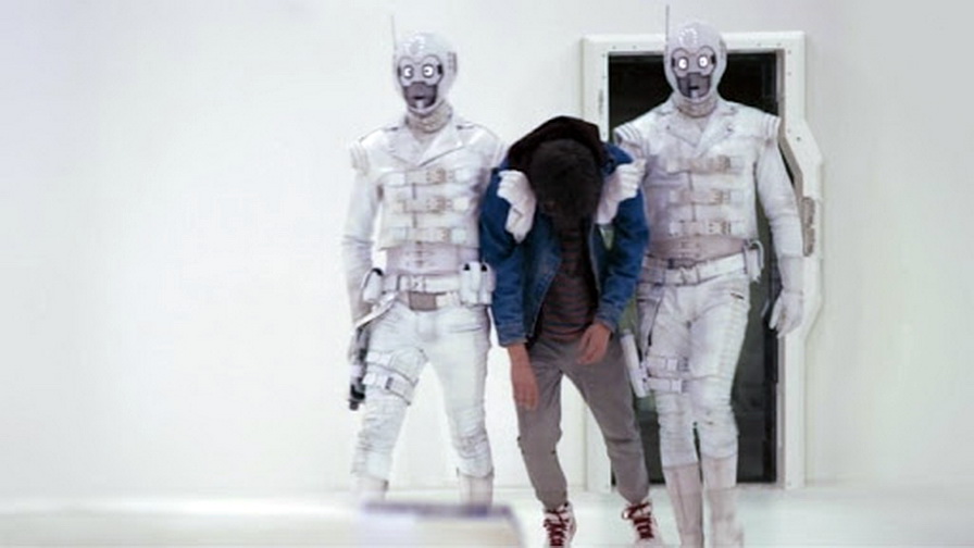 Тут вам и шуточки в собственный адрес - телеведущая Кристина (Сара Навратил) предлагает отправить видео Айзека на экспертизу художников Hollywood VFX (место работы режиссера). И полезные советы по поводу того, как затруднить распознавание лиц андроидами - для этого следует надеть одинаковые маски с радиальными полосами. И начало, ни с того ни с сего романтических отношений между Айзеком и Сарой.