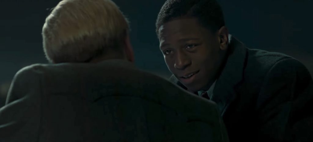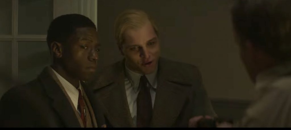 Сам Бонхёффер в начале 1930-х, учась в семинарии в Нью-Йорке, играет джаз в негритянском клубе. Вообще, именно афроамериканцы раскрывают ему глаза на несправедливое устройство мира вообще и расизм в частности. Показано это все предельно прямолинейно и опять же не вполне соответствует истине: пастор дружил с темнокожими и принимал их положение близко к сердцу, но до джаз-сейшенов дело все же не доходило.