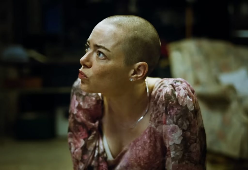 «Бугонию» (к тому, что же такое бугония, вернемся чуть позже) можно продолжить рассматривать в контексте сотрудничества Эммы Стоун и Йоргоса Лантимоса - третий фильм кряду едет на энергии их неугасающего творческого восторга друг от друга. Режиссер озорно провоцирует артистку на новые сумасшедшие вызовы, полную самоотдачу и изменения во внешности. Эмма с бритой налысо головой (прямо в кадре!) действительно похожа на внеземное чудо, запертое в логове аутсайдеров, - уязвимая и слабая до тех пор, пока не начинает говорить. Талант дипломатии и азы психологии позволяют Мишель руководить собственным похищением и условиями положения заложницы.