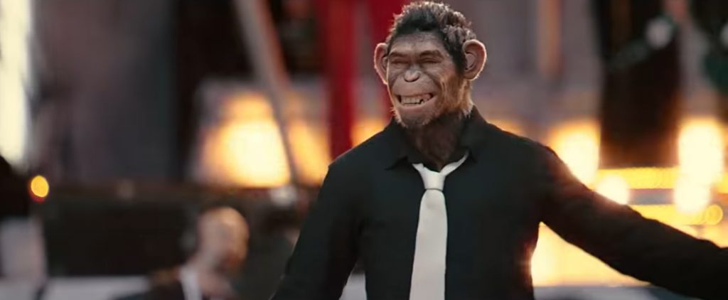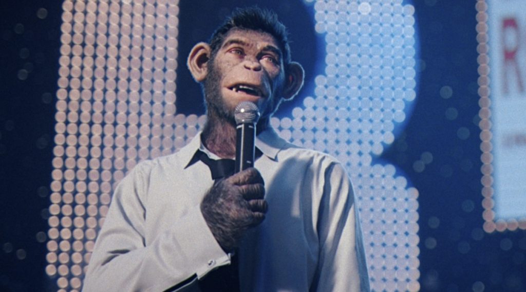 ВПЕЧАТЛЕНИЯ И АКТЕРЫ: молодую версию Робби Уильямса играет Джонно Дэвис, а во взрослом возрасте - сам музыкант. С помощью технологии захвата движения созданная на компьютере обезьяна двигается, как актёры. За CGI-шимпанзе отвечала студия Wētā FX, прежде работавшая над «Аватаром» и франшизой «Планета обезьян». К графике и визуальным эффектам в фильме нет ни единого вопроса.
