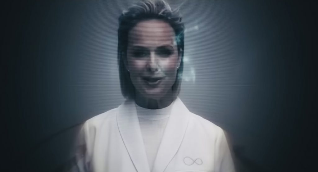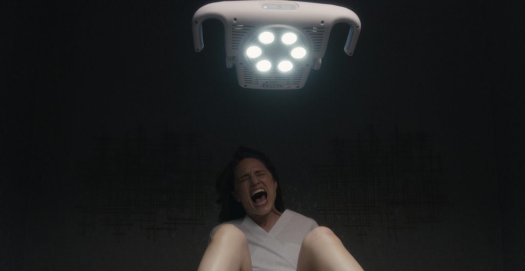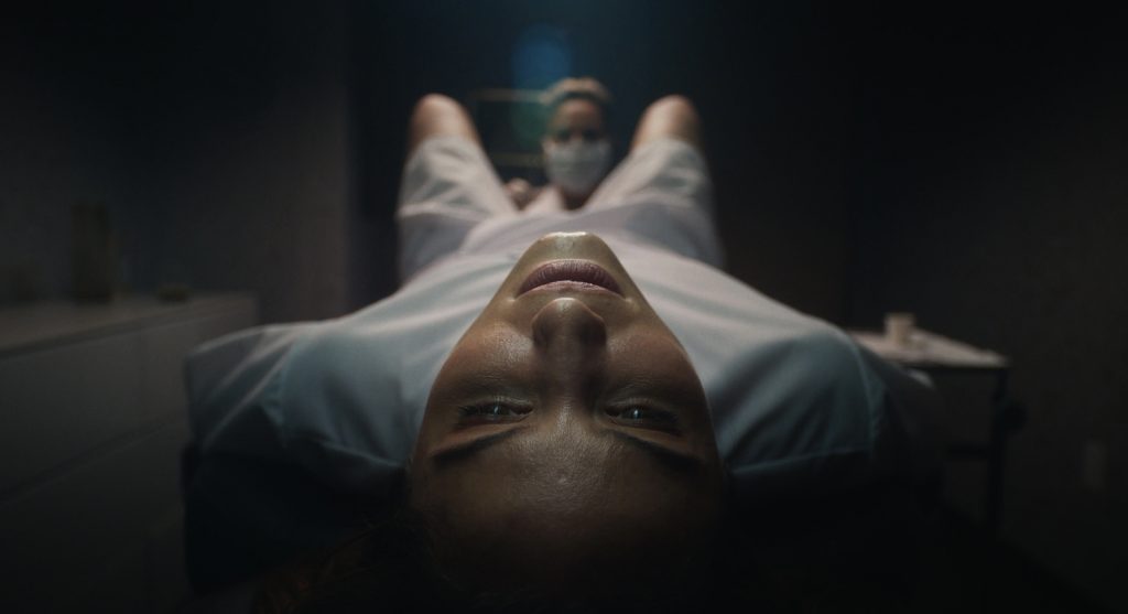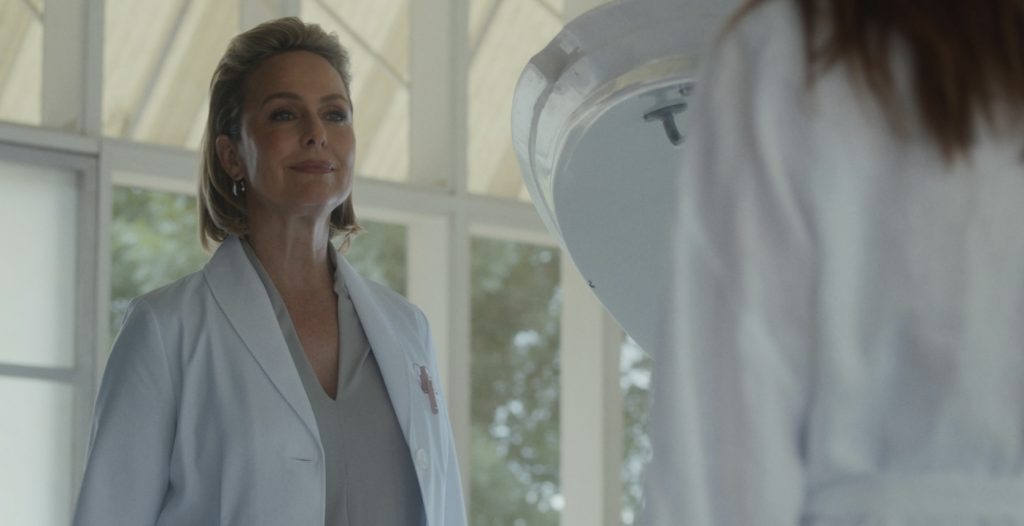 И в ближайшей округе удачно оказывается медицинский центр, на этой проблеме профилирующийся, где заправляет всем светило науки доктор Элизабет Симмонс (Мелора Хардин). Помявшись, ради приличия Элла соглашается пройти экспериментальный курс - ей назначают гормоны, проводят сеансы психотерапии и вживляют высокотехнологичный имплант. С этого места стартует непосредственно хоррорная часть. Прямо скажем, ничем не выдающаяся! В наличии стандартный набор штампов - скримеры, слуховые, визуальные галлюцинации и прочие искажения восприятия событий персонажами. Нельзя сказать, что эти приемы совсем не работают - определенную жуть они все же нагоняют, но гораздо интереснее следить за психологической составляющей повествования. Здесь, к сожалению, придется констатировать, что авторы главную идею все же, что называется, недокрутили.