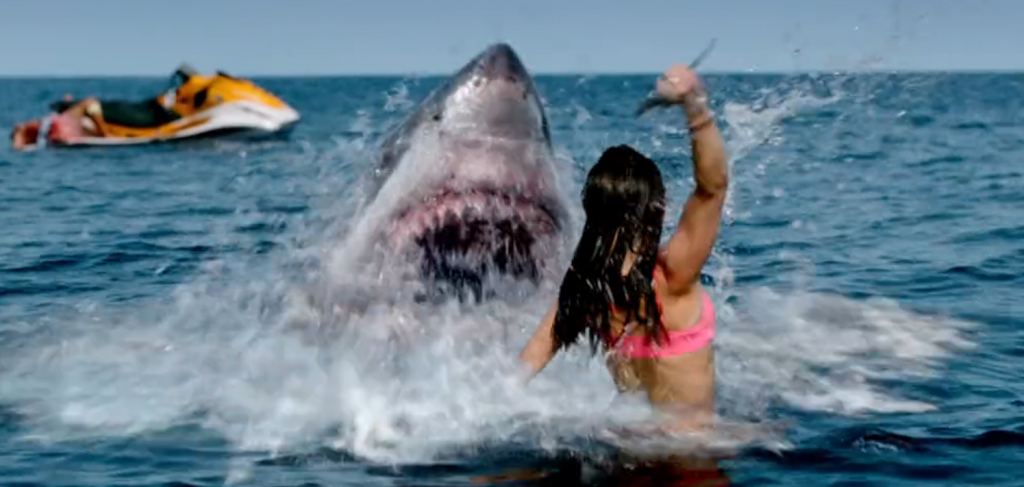 Но, как только появляется акула, дело идёт явно лучше. Нанн снимает ее атаки с настоящим драйвом и огромным количеством крови. Есть также несколько кошмарных эпизодов, таких, например, как персонаж, зацепившийся за тело, которое тащит акула. Но, к сожалению, подобных моментов мало, и кажется, что «Челюсти. Столкновение» просто накручивает хронометраж. Это не мешает фильму пугать, но означает, что в нем мало саспенса. Сама акула, как и ожидалось, создана на компьютере, и качество компьютерной графики сильно различается от кадра к кадру. Сцены, в которых он плавает, молча угрожая незадачливой компании, смотрятся неплохо. Но сцена нападения на гидроцикл может вызвать скептическую ухмылку. При этом, живые съёмки достаточно убедительны, но когда в дело вступает CGI, усиленное бойней, это оставляет желать лучшего.