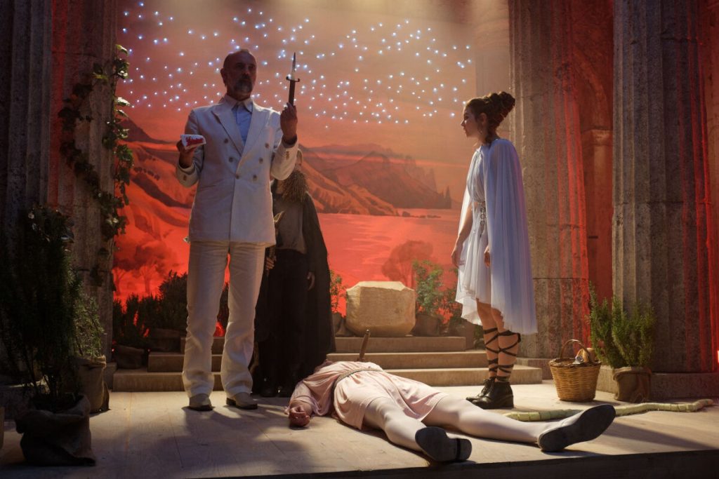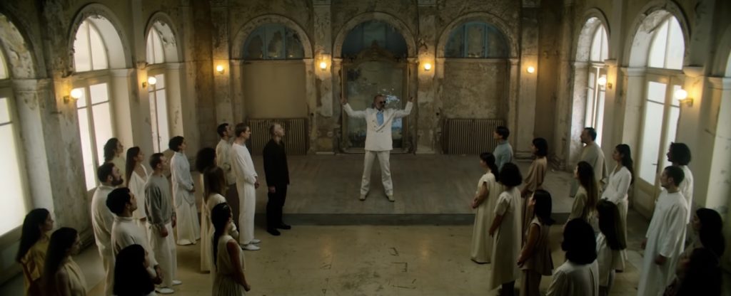 ВПЕЧАТЛЕНИЯ И АКТЕРЫ: автор фильма Никиас Криссос - немецкий режиссер с греческими корнями. Вероятно, поэтому в изобретенном им культе причудливо сплелись греческая мифология и германский эпос. Персонажи облачаются в белоснежные хитоны, гуляют на фоне античных колонн и мечтают попасть в Элизиум, обитель душ блаженных. В то же время главный актер местного театра и любимец Фуста носит имя Зигфрид - как герой «Песни о Нибелунгах». Эта деталь сразу дает понять, что зритель имеет дело не с безобидными фанатами Древней Греции, а с тоталитарной сектой, в которой людям просто промывают мозги.