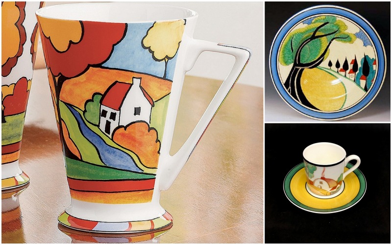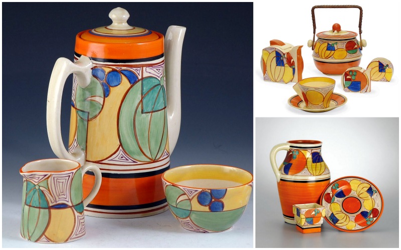 СПРАВКА: Клариса Клифф (1899 - 23 октября 1972) была английским художником-керамистом и работала с 1922 по 1963 год. Вначале она рисовала позолоту на изделиях традиционного дизайна. Затем Кларисса сменила работу, чтобы научиться рисовать от руки, одновременно изучая искусство и скульптуру в Бурслемской школе искусств. В 1916 году она приняла необычное решение и переехала на фабрику AJ Wilkinson в Ньюпорте. Клифф была очень амбициозной и приобрела навыки лепки статуэток и ваз, золочения и ручной росписи посуды. В начале 1920-х менеджер по декору Джек Уокер обратил на Клифф внимание одного из владельцев фабрики, Артура Колли Остина Шортера. Колли Шортер был на 17 лет старше Клариссы. Он тогда был женат, но после смерти жены стал ее мужем. А пока он направил Клифф на обучение в Королевском художественном колледже в Кенсингтоне и в Париж. В 1927 году ей предоставили собственную студию в соседнем здании Newport Pottery, которое Шортер купил в 1920 году. Здесь Клифф разрешили украсить несколько бракованных изделий. Она использовала цвета эмали на глазури, что позволило получить более яркую палитру, чем цвета подглазурной краски. Кроме того, она скрыла недостатки изделий простым узором из треугольников. Вскоре факсимильная подпись Клифф «Ручная роспись причудливой работы Клариссы Клифф, гончарная мастерская Ньюпорта, Англия» стала признаком красивых и модных изделий. Формы для изготовления посуды, начиная с 1929 года, приобрели более «современное» влияние, часто угловатые и геометрические элементы, а некоторые из них позже стали называть арт-деко.