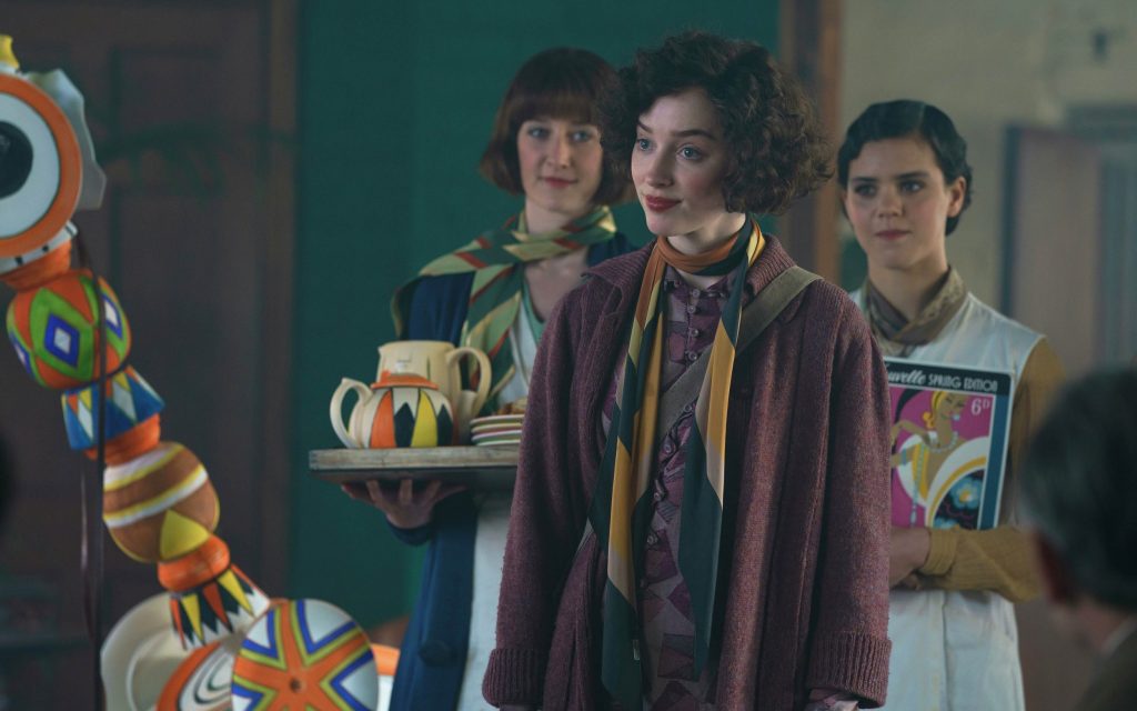 ВПЕЧАТЛЕНИЯ И АКТЕРЫ: Фиби Дайневор покорила сердца зрителей после того, как сыграла роль Дафны (она же герцогиня Гастингс) в драме «Бриджертоны» от Netflix. В фильме Клэр Маккарти «Цветная комната» она преобразилась в Кларису Клифф - девушку, вышедшую из самых низов и ставшую знаменитым художником-керамистом. Путь Кларисы из заводского цеха к вершинам художественного мастерства рассказан режиссером Клэр Маккарти в ярком и оптимистичном фильме, который, местами, кажется преувеличенно веселым. Но Фиби Дайневор показывает озорство и упорное неповиновение своей героини так достоверно, что поневоле сжимаешь за неё кулачки. Острых углов режиссёр старательно избегает. Здесь даже дым выходит из заводских труб живописными завитками и цвет его можно определить как «благородный каштановый». Только раз, когда Кларисса оставляют ключи от цеха, один из ее коллег произносит: «А что, если она суфражистка?» но звучит это как благодушная шутка.