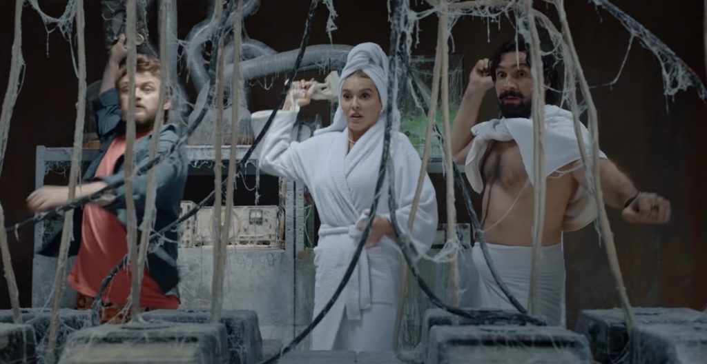 За эротику, кстати, отвечает не только модель Анна Буткевич, но и 84-летняя Ада Роговцева («Салют, Мария!», «Укрощение огня»), которая свою первую роль сыграла в 1956 (!) году. Ее энергии позавидуют многие нынешние, а в сцене с примеркой платьев а ля «Красотка», под песню Tayanna «Фантастична жінка», кинозвезда выглядела вполне органично. Да и в постели с Мишей, с вибратором в руке, ее героиня смотрелась естественно. Исполнитель роли Миши, по словам Ады Николаевны - настоящий актёр, безо всяких скидок. И с ней сложно не согласиться. Если с образом шутника DZIDZIO мы как-то уже свыклись, то способность Михаила Хомы изображать ярость, нежность и отчаяние стала приятным сюрпризом.