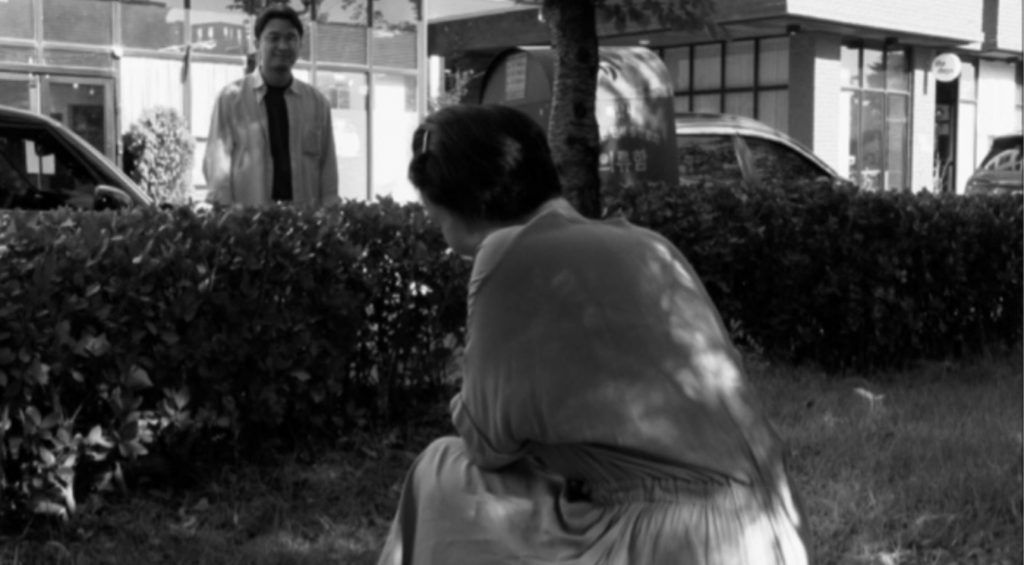 ВПЕЧАТЛЕНИЯ И АКТЕРЫ: Казалось бы, кореец Хон Сан-су, известный своими минималистичными драмами, уже давно достиг предела. В его картинах герои почти всегда говорят ни о чем, статичное изображение перебивается редкими зумами, в некоторых фильмах одни и те же ситуации разыгрываются по два или три раза с разным исходом. Что интересного в подобном кино, которое может показаться очень ленивым и просто сделанным? В кино Хона мало монтажных переходов, а это значит, что актерам приходится подолгу быть в образе, им нужно держать естественный человеческий темп речи с паузами и молчанием, они не могут «спрятаться» за декорациями, музыкой и эффектным освещением. Кино Хона - это голое искусство, которое в своей эффектности и выразительности сравнимо с произведениями видеоарта, передающими основную авторскую идею и переживание за короткий период времени. Тем не менее фильмы Хона Сан-су едва ли можно перевести в другой медиум: они всецело принадлежат миру кинематографа - ленты надо смотреть от начала до конца, а сюжет имеет большое значение. В кино Хона могут дублироваться ситуации («Женщина, которая убежала»), сцены («В другой стране») или даже эпизоды («Прямо сейчас, а не после»). В черно-белом «Дне, когда она вернулась» одни и те же диалоги и сцены воспроизводятся по несколько раз, и сам эффект репита является главной идеей произведения. Пэ Чон-су прекрасно осознает, что девушки спрашивают ее об одном и том же, а потому она старается чуть по-разному ответить.