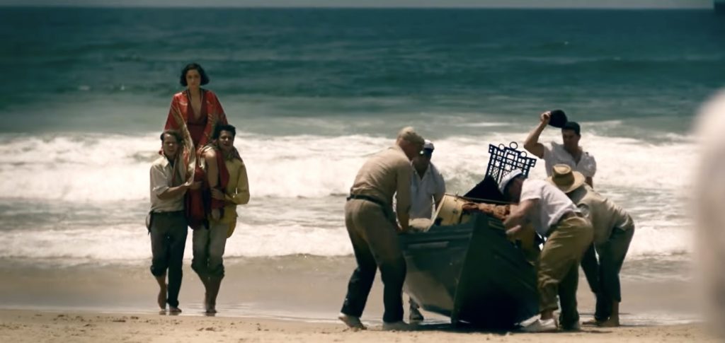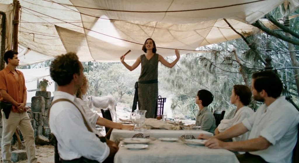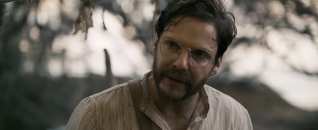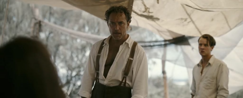 С самого начала нас мучает вопрос: если персонажи исторически обоснованы и «реальны», то почему они кажутся такими наигранными? Джуд Лоу здесь опускается до тевтонской угрюмости в роли Фридриха Риттера, немецкого врача, который отвернулся от общества, чтобы отправиться на зеленый остров Флореана в южной части Галапагосского архипелага Эквадора. На дворе 1929 год, и хотя катастрофа Первой мировой войны давно позади, мир погрузился в экономический коллапс. Риттер считает, что впереди нас ждет полное разрушение старого порядка с возможностью построения на его основе новой утопии. И именно он, ей-богу, будет ее разрабатывать! Риттер работает с мессианской яростью над манифестом, черпая темное вдохновение из Ницше. Хотя Риттер пытается представить себе новое будущее, но он, кажется, уже отказался от него. Его стремления движимы циничным бахвальством, потерей веры в человечество; кажется, это и есть настоящая причина, по которой он покинул Германию, чтобы жить как тропический отшельник. С ним его жена, Дора (Ванесса Кирби), и вместе они ведут себя как развратные Адам и Ева. Она здесь, чтобы поддержать его великое видение, но эти двое сражаются даже больше, чем прелюбодействуют, и то, что мы чувствуем, наблюдая за ними, заключается в том, что Риттеры находятся в крестовом походе, который кажется обреченным, потому что это безумие. Фридрих не Ницше. Он больше похож на извращенного маньяка из 1960-х, который принял слишком много наркотиков.