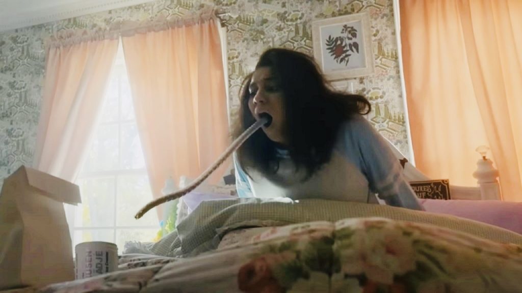 И если первая часть картины напоминала плохую пародию на «Тело Дженнифер», то второй акт обернулся внезапным оммажем на «Колдовство» Эндрю Флеминга: все окружение Эбби и Гретхен начинает страдать от дьявольских козней последней, которые, как это часто бывает, бьют по самому больному. Старшеклассница, которая отчаянно стремилась похудеть, превращается в анорексика, другая девушка, отчаянно жаждущая внимания, чуть не умирает от опасной аллергии. Однако сама Эбби, подобно Сидни Прескотт из «Крика», успешно ускользает от любой опасности и просто пытается спасти одержимую подругу, а заодно и всю школу от погибели. (Оля Смолина)