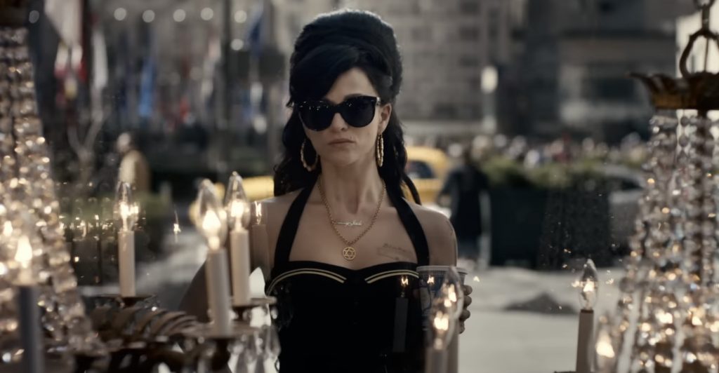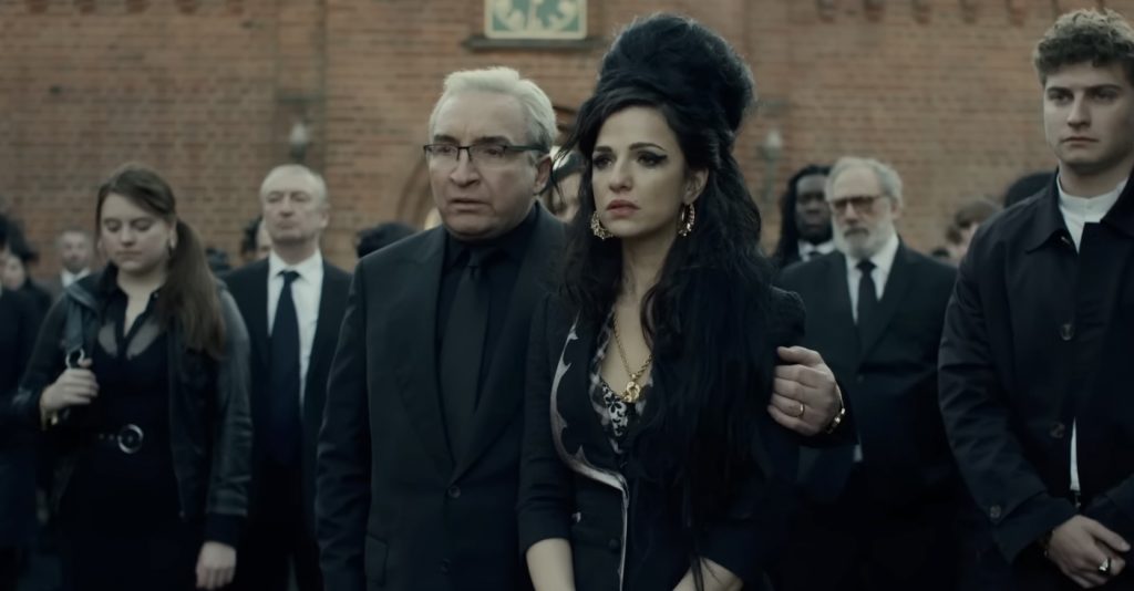 Может, главная причина для съемки байопика — возможность не узнать, а увидеть историю кумира? Проблема в том, что, как и все большие герои эпохи ютуба, соцсетей и мобильных телефонов с камерами, Эми Уайнхаус уже фактически сыграла саму себя в байопике. В 2015 году вышло большое биографическое полотно «Эми» Асифа Кападиа, целиком скроенное из домашних и публичных видео с героиней, без лишних комментариев и говорящих голов. Естественно, что с точки зрения реализма и точности изображения свежая инсценировка с профессиональными актерами априори проигрывает аутентичному оригиналу.