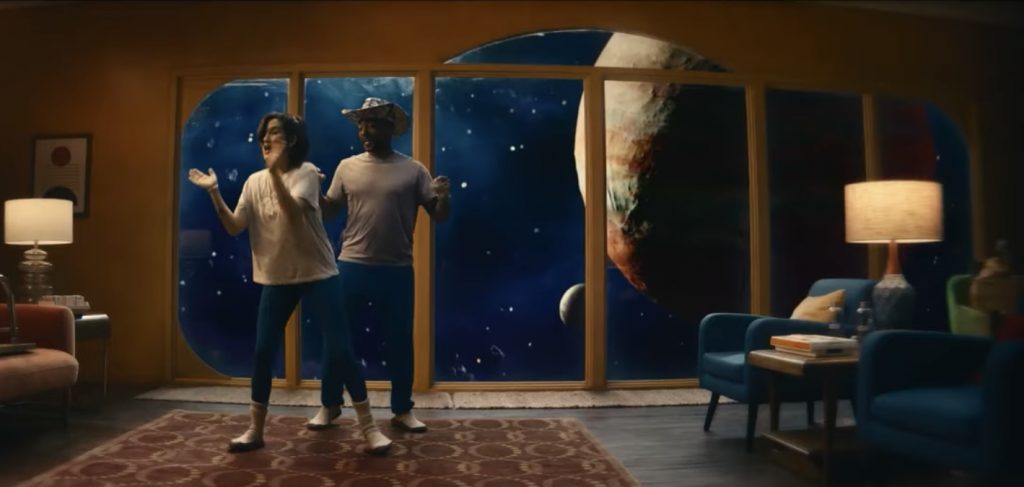 Если отбросить шутки про дрель и вибратор (Джейн все же не фригидная сука), это удивительно старомодный фильм. Эстетика картины объединяет комфорт ретро-фургона со спецэффектами из папье-маше «Путешествия на Луну». На кухне космического шаттла есть шкафы из ДСП ядовитого цвета и сокращающийся запас пирожных. Когда свет падает на корабль, можно поклясться, что он обшит деревянными панелями. Фильм выглядит до невозможности очаровательным. Возможно, перед нами попытка превратить эту привлекательность в сарказм - ведь даже неисправная компьютерная система корабля выдает плохие новости пиксельным шрифтом. В какой-то момент шутка вызывает смех, но создает тональный диссонанс - ведь мы смотрим научную фантастику а не зарисовку о том, что НАСА относится к своим миссиям как к «Тамагочи».