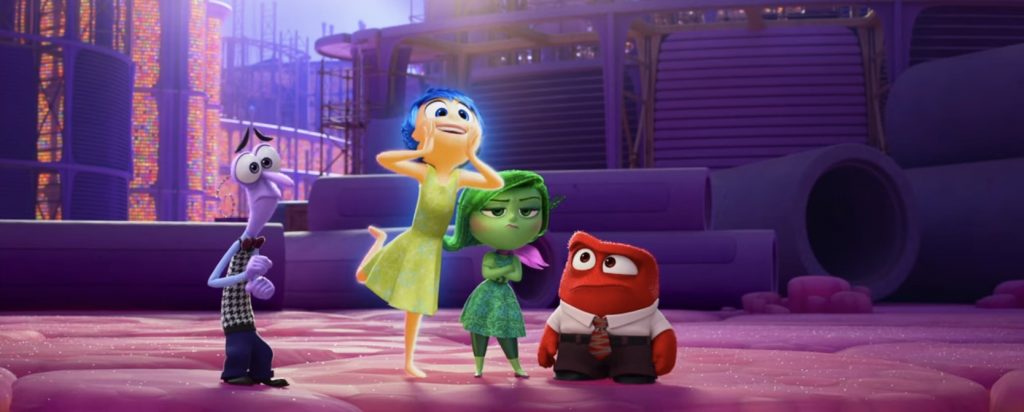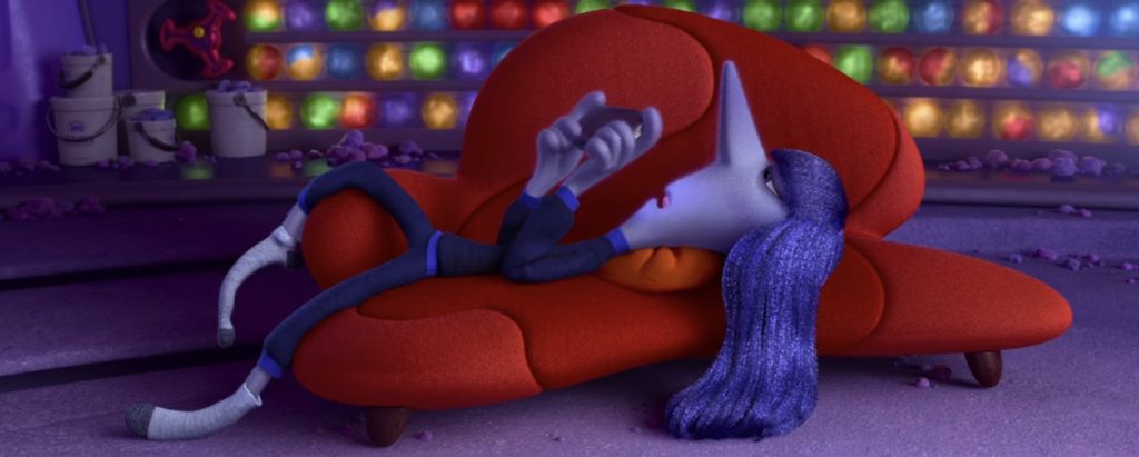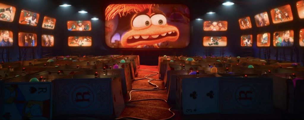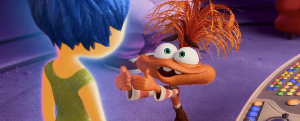 Теперь это новички - энергичная Тревожность (Майя Хоук), заискивающая Зависть (Айо Эдебири), томная Скука (Адель Экзаркопулос), представляющаяся не иначе, как ennui и говорящая, разумеется, с французским акцентом, и конфузящийся по пустякам огромный Стыд (Пол Уолтер Хаузер), чуть что прячущийся под капюшоном. Тревожность изгоняет старую команду из пространства, представляющего собой нечто вроде центра управления эмоциями, и создает новую версию Райли - одержимую страхами, закомплексованную и готовую на всё ради расположения своего кумира Вэл Ортиз (Лилимар), звезды хоккейной команды.
