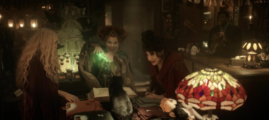 Второй «Фокус-покус» тоже начинается с флешбэка, только не о пропавших детях, а о взрослении салемских ведьм в 1653 году. Интересно, как легко и непринужденно режиссер вписывает в предысторию сестер Сандерсон феминистский контекст. Когда Винни исполнилось шестнадцать, местный пастор настаивал, чтобы она вышла замуж не за своего возлюбленного Билли Бутчерсона (он появлялся в образе зомби в первом фильме), а за некоего Джона Притчетта. Но девушка отвергла авторитет церкви и отказалась становиться его женой. За это Винни и ее сестер Сару и Мэри навсегда изгнали из Салема. Героини сбежали в лес, в котором встретили могущественную колдунью (Ханна Уэддингхэм), посвятившую их в ведьмовство и вручившую им книгу заклинаний. В предыстории режиссер обозначает и задатки характеров взрослых сестер. Винни уже проявляет настойчивость и властность, Сара - более податливая и романтичная, а Мэри - задорная и неугомонная. Пролог - одна из самых важных частей фильма, которая нужна, чтобы лучше раскрыть личности сестер Сандерсон. Если в первом «Фокусе-покусе» главная цель вернувшихся ведьм - забрать души детей, чтобы помолодеть, то здесь она отходит на второй план, а героини заняты местью своим врагам из прошлого.