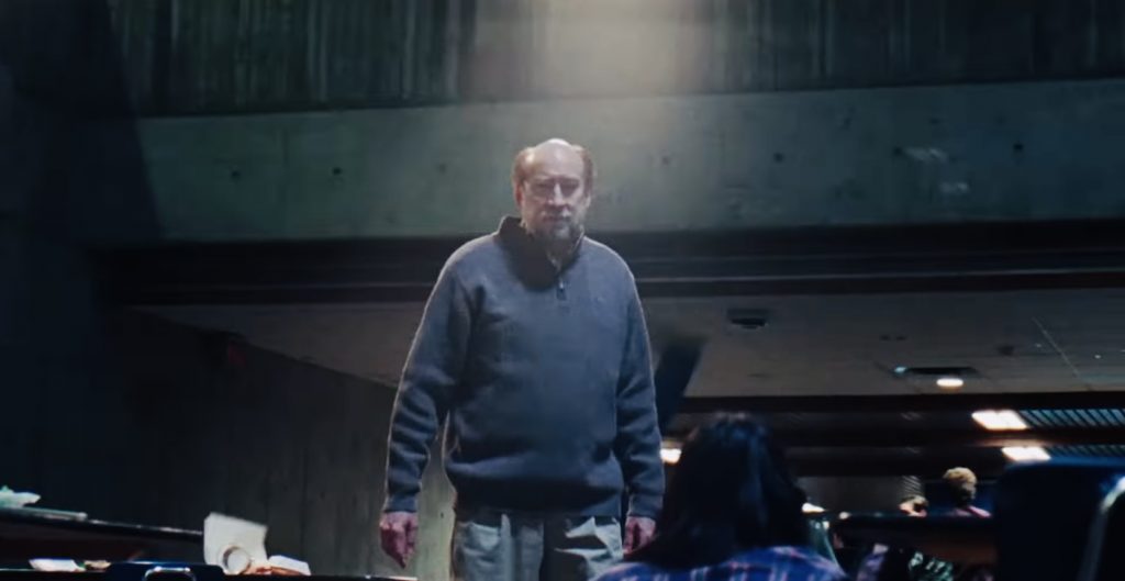 Здесь, как и в «Адаптации», перед Кейджем стоит задача выглядеть ничем не примечательным. Художник по костюмам одевает звезду в серую одежду, которую его герой, вероятно, заказал по каталогу. То же самое делает команда парикмахеров и визажистов, которые убрали его фирменную прическу и позволили седине проступить в его бороде. В аудитории Пол читает лекцию о полосах на шкуре зебры, объясняя, как работает их камуфляж: идея состоит не в том, чтобы слиться с природой, а в том, чтобы раствориться в толпе. На самом деле, это привычная стратегия Пола большую часть его жизни, хотя у него есть большое желание публиковаться. Он работал над теорией о муравьях (что-то связанное с их статусом суперорганизма) и тайно противостоит бывшей однокласснице Шейле (Паула Будро) по поводу статьи, дублирующей исследования, которые он проводил десятилетиями ранее в аспирантуре.