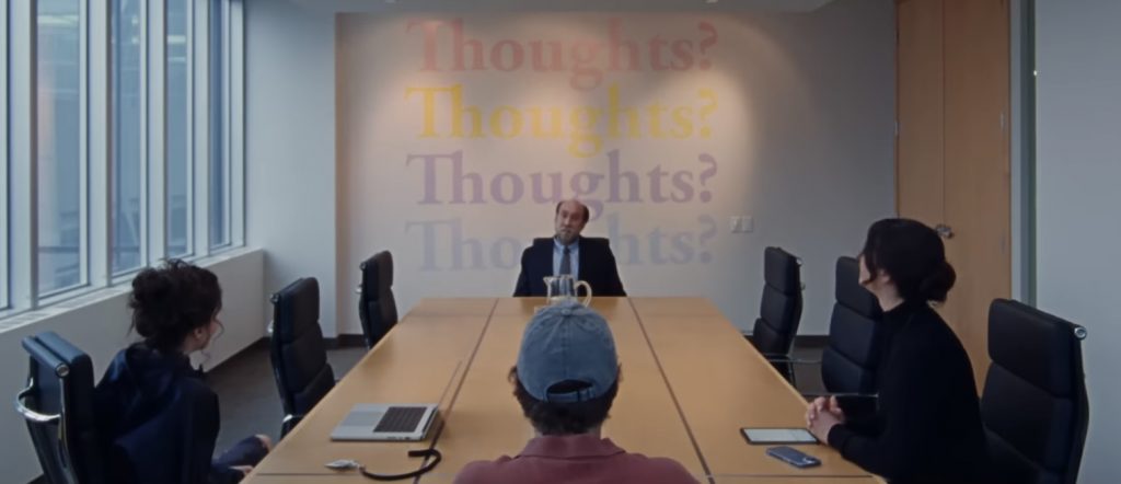 Но затем Пола приглашают на беседу в нью-йоркский офис нетрадиционной маркетинговой фирмы под названием «Мысли?». И менеджер Трент (Майкл Сера), напоминающий лохматого хипстера, предлагает ни много ни мало - стать первым в мире человеком влияющим на людей через их сны. Вот с этого момента фильм Боргли становится все больше похожим на советскую картину. Вместо сладких грез, сны становятся все более мрачными, а люди имеющие влияние на Пола, хотят получить эксклюзив. Так, Молли (Дилан Гелула), сотруднице фирмы «Мысли?» начинают сниться «интенсивные сексуальные сны», и она доходит до того, что пригласить Пола домой и воспроизвести их наяву. Получается одна из самых эмоционально уязвимых сцен, которые когда-либо исполнял Николас Кейдж.
