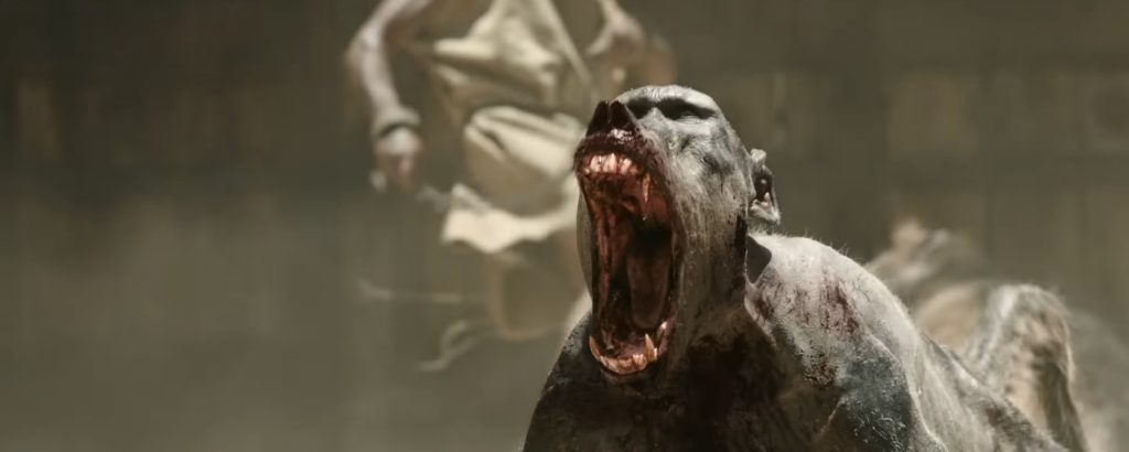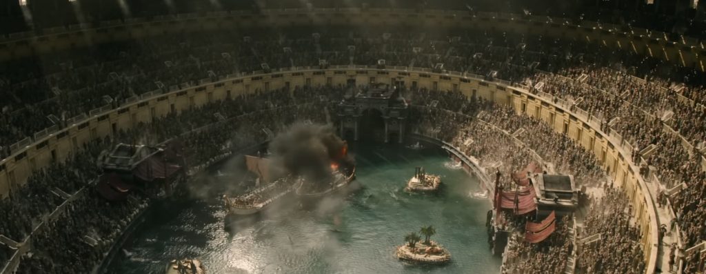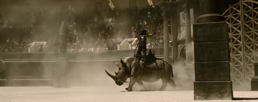 Этот сиквел не боится запачкать руки - он представляет ключевые сцены и моменты для фанатов (это мы все!), а важнейшие гладиаторские бои выглядят почти галлюцинациями. Морская битва воссоздается на затопленной арене, кишащей акулами. А огромный носорог, с гладиатором на спине, получает пинка под чешуйчатый зад. Когда же Люциусу в одной из сцен приходится сражаться со злобными бабуинами, это настолько похоже на научную фантастику, что хочется воскликнуть: «Гладиатор против пришельцев?»…