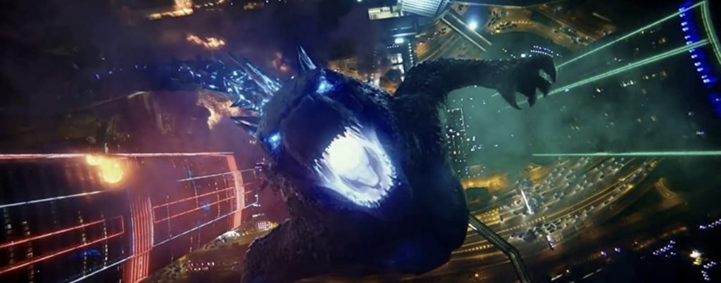 Нет, драки раз на раз Годзиллы с Конгом - это замечательно, конечно, более чем. Мордой об небоскрёб, топором (о да, топором!) по морде, чудные ракурсы с видом из глаз мегагориллы. Но вот этот вот третий одной своей наружностью возносит зрелищность до каких-то совершенно невероятных высот, а как он в бой вступает, так сразу хочется фильму сразу простить всё плохое и ещё сверху доплатить, лишь бы это великолепие не кончалось, - настолько финальная битва прекрасна. Потом, правда, финальная битва всё же кончается, и плохое снова вспоминается. (Алексей Литовченко)