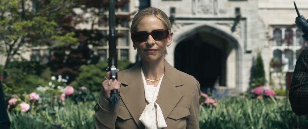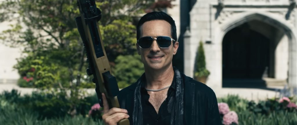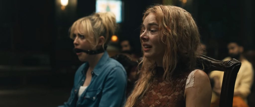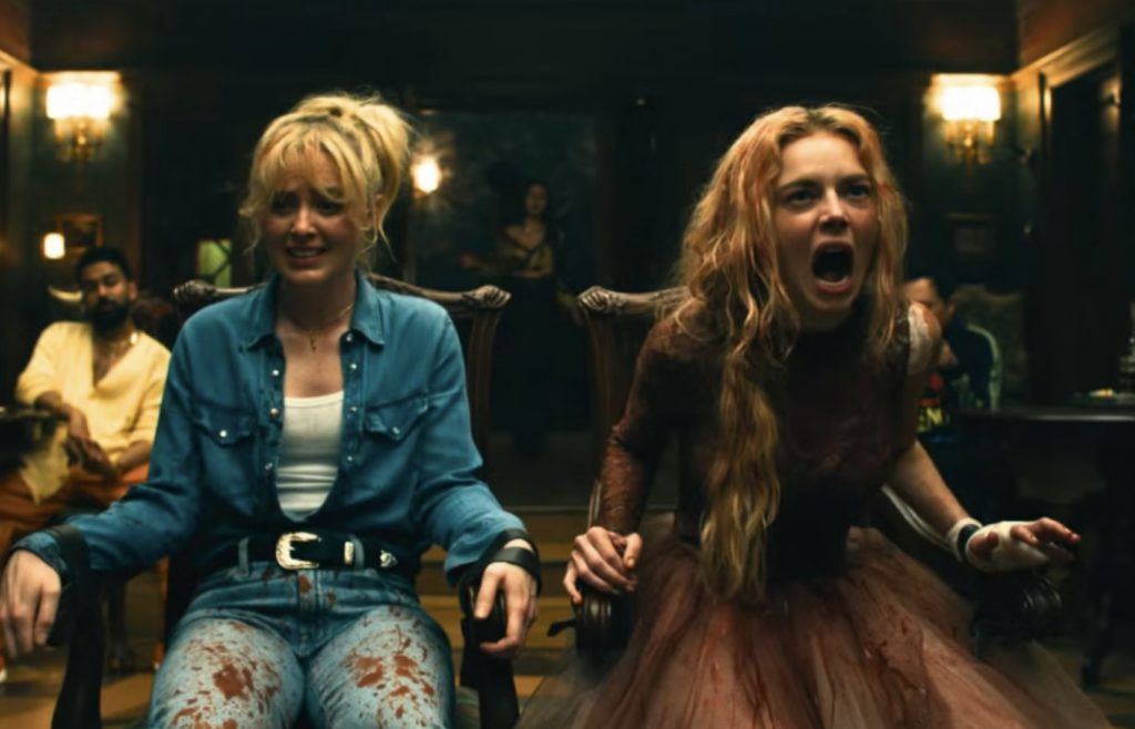 Ее срочно доставляют с места предотвращенного жертвоприношения в больницу, но она сталкивается с целым потоком вопросов «кто, что и почему» от озадаченного детектива. Всегда интересно поиграть с вопросом о том, что на самом деле произойдет с выжившей после бойни в фильме ужасов, которая бросает вызов здравому смыслу (оригинальная концовка фильма «Прочь» Джордана Пила дала один мрачно реалистичный ответ), но авторы сценария стремятся вернуть нас к действию. На этот раз Грейс приходится играть в прятки с отчужденной сестрой Фейт (Кэтрин Ньютон из фильма «Эбигейл») и противостоять многочисленным врагам из разных семей. В сценах, затянутых излишними пояснениями, словно кто-то зачитывает правила игры, в которую вы больше не хотите играть, адвокат (Элайджа Вуд) объясняет, что, пережив предыдущую игру в прятки и уничтожив целый род, Грейс теперь спровоцировала более масштабную борьбу за мировое господство. И каждый могущественный глава сатанинской семьи должен попытаться убить ее до рассвета, чтобы занять место во главе стола.