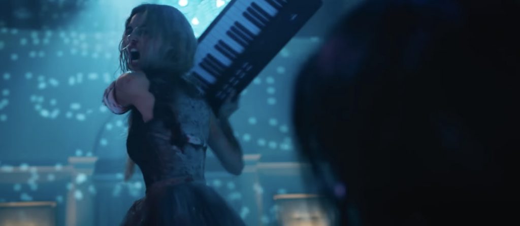 Однако, как и оригинал, этот фильм больше заинтересован в создании коммерчески привлекательных фигурок, чем в реальных персонажах, одержимый образами, которые упорно настаивают на своем культовом статусе, а не на людях, которые нам действительно дороги. Сестры разговаривают друг с другом, как персонажи видеоигр, вываливающие на всех информацию (фразы вроде «Мне было 18, и это была стипендия, которая выпадает раз в жизни!» произносятся с невозмутимым лицом). И хотя Кэтрин Ньютон изо всех сил пытается хоть как-то это сыграть, Самара Уивинг выглядит как психопатка, похожая на Марго Робби, говорит громко, но без особого энтузиазма. В любом случае, у неё не так уж много материала для работы: её героиня, которую сложно воспринимать в образе «последней выжившей девушки», - это невзрачная куча многозначительных закатываний глаз, банальных фирменных приёмов (она любит сигареты!) и иконографии, основанной на костюмах для Хэллоуина (свадебное платье, забрызганное кровью).