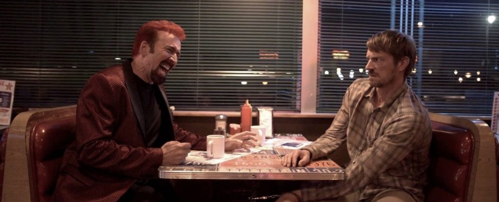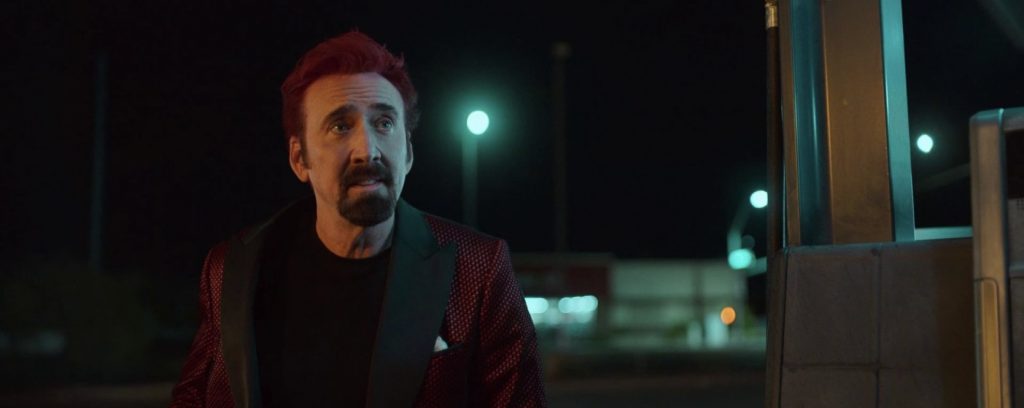 Что же связывает попутчиков? Вопреки спойлерам стоит отметить, что больше всего в этом кино заинтересованы не его авторы, а Николас Кейдж. Ему, как и определённой когорте поклонников, не хватало подобного персонажа в карьерном списке. Актёр отлично проводит время в компании своего неуравновешенного альтер эго, пассажира из ада: то как заправский Джокер, покинувший Лас-Вегас, предложит карту, то процитирует Евангелие и страшный мем с таксистом («Вези меня, мразь!»), то прикуёт к столу в забегаловке, то постучит заячьей лапкой в ожидании неправильного ответа, то и вовсе оставит кровавый след. Кейдж ожидаемо доминирует над здешним пространством кино и своим экранным партнёром, принуждает забыть о сюжете за ненадобностью и добивается-таки заявленной в оригинальном названии симпатии дьяволу.