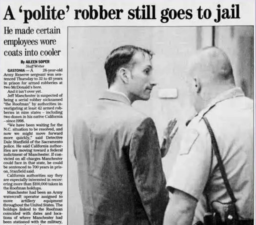 P.S. полиция убедила Ли Уэйнскотт позвонить Джеффри, которого она знала под именем Джон Зорн и пригласить его к себе домой. 5 января 2005 года Джеффри Манчестер был задержан. Он был приговорён к сорока годам тюремного заключения, которые отбывает в Центральной тюрьме города Роли, штат Северная Каролина. Манчестер предпринимал попытки побега из тюрьмы в 2009 и 2017 годах. Ожидаемая дата его освобождения - 4 декабря 2036 года….