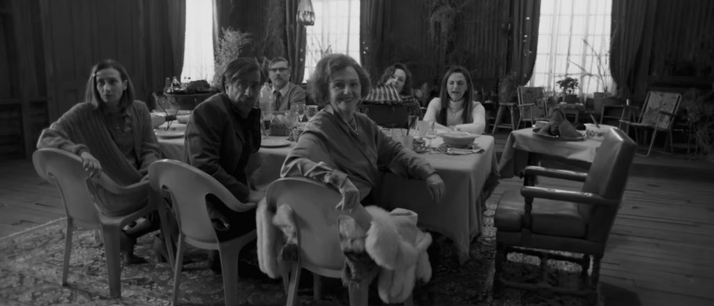 Баланс между ерничеством и честным возмущением найти сложно, и режиссера регулярно заносит в разные крайности: «Граф» то с яростью хоррора раскраивает черепа, то превращается в салонный фарс про наследников, то надолго застревает в вязком болоте метафоры. Само название - прозвище, которое, если верить фильму (а во многих деталях ему и правда можно верить), Пиночет предпочитал в ближнем кругу, и в то же время прозрачная отсылка к другому знаменитому кровососу из Трансильвании. У Пиночета есть даже собственный Рэнфилд: слуга Краснов - важнейший персонаж картины. Он тоже, кстати, реальная историческая фигура, пусть Ларраин поиграл и с его биографией (Краснов жив и отбывает 144-летний тюремный срок, так что вампиризм ему пригодится).