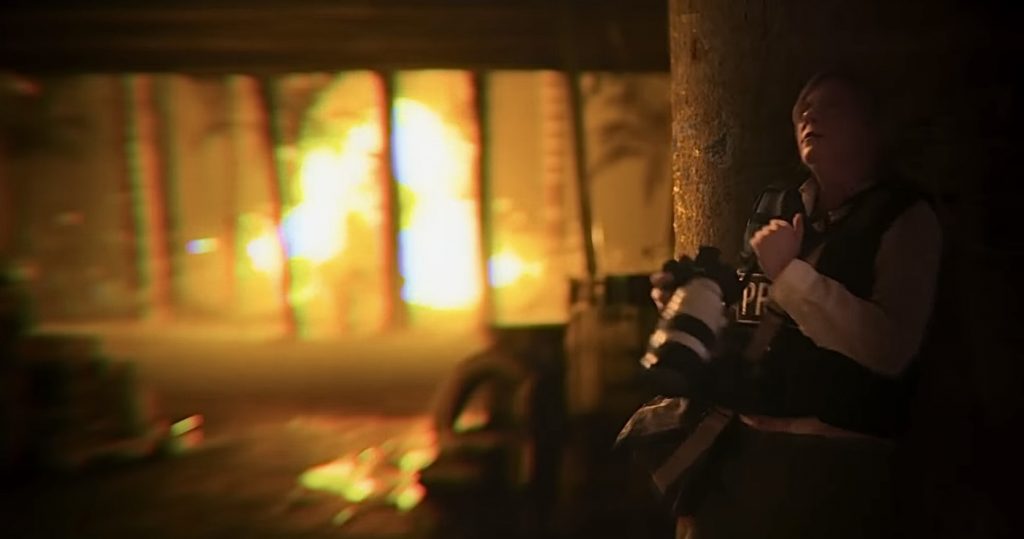 Являясь вроде бы роуд-муви, новый фильм Гарленда в самом деле больше похож на процедурал. За каждым поворотом захламленного пустыми автомобилями хайвея обнаруживаются новые улики. Будь то реднеки, захватившие в плен вчерашних соседей и позирующие на фоне их истерзанных тел перед беспристрастным объективом Ли. Или обезумевший солдат удачи (страшное камео Джесси Племонса), интересующийся у журналистов, перед тем как их убить, какого рода американцами они себя считают. Наконец, отстреливающийся от неведомого противника представитель ВС (давний соратник Гарленда Карл Глусман), полагающий, что мир превратился в тир без призового фонда. Не говоря уже о жителях штатов, занявших нейтралитет в братоубийственной бойне. Они делают вид, что жизнь продолжается: торгуют новыми коллекциями модной одежды в бутиках, охраняемых денно и нощно снайперами. Да и главные герои, будто списанные с международных корреспондентов, сопровождавших 7 октября «Хамас», а теперь получающих за живописные снимки трупов престижные премии, демонстрируют гражданскую озабоченность, позабыв, что информация не есть высшая ценность. Запечатлеть чью-то смерть им важнее, чем кого-то от смерти спасти. Эта нравственная дилемма не нова, но все более омерзительна.