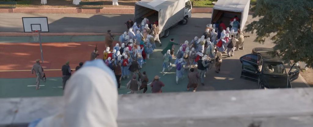 Как мы знаем, Мартин Кэмпбелл - профессионал, поэтому, когда действие все-таки начинается, зрителям будет на что посмотреть! Во время решающего боя есть изящное решение в виде фокусировки, которая быстро переключается с лица снайперши на конец ее винтовки. А серьезный рейтинг R оправдан не только сценой незавершенной казни Джейк - ее побивали камнями. Но и моментом, когда в одной из ранних сцен террористы сбрасывают с крыши школы пару девочек-подростков. Очевидно, что этот поступок должен быть ужасающим, но режиссер не просто изображает его таковым. Он заставляет камеру следовать за первой девочкой с крыши до земли, только чтобы подбросить ее и увидеть, как вторая девочка-подросток падает и разбивается насмерть. Конечно, само насилие здесь не проблема. Проблема в том, что оно выглядит эксплуататорским - чтобы дать широчайшее чувство ужаса и позволить Кэмпбеллу показать, насколько кровавым и эффектным он может сделать это насилие.
