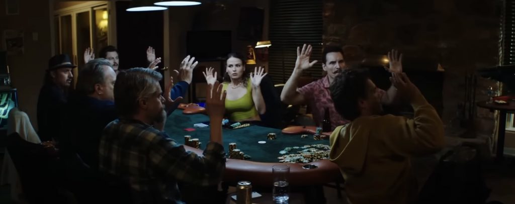 ВПЕЧАТЛЕНИЯ И АКТЕРЫ: У Энди (Эмиль Хирш) две любви в жизни: его девушка Хлоя и покер. Он часто играет в местном баре. Баром управляет Джек (Дэвид Кит), парень, который придерживается жестких правил, но, похоже, сам  чурается любых азартных игр. В один из таких дней в игровой комнате появляются двое мужчин в масках и с оружием, заставляют всех игроков раздеться до нижнего белья и крадут весь банк, что в сумме составляет около 200 000 долларов. Местный коп по прозвищу Эл Ти (Питер Фачинелли) пытается их остановить и даже стреляет в их машину, но грабителям удается скрыться.  Все расходятся опечаленные - их денежки пропали!