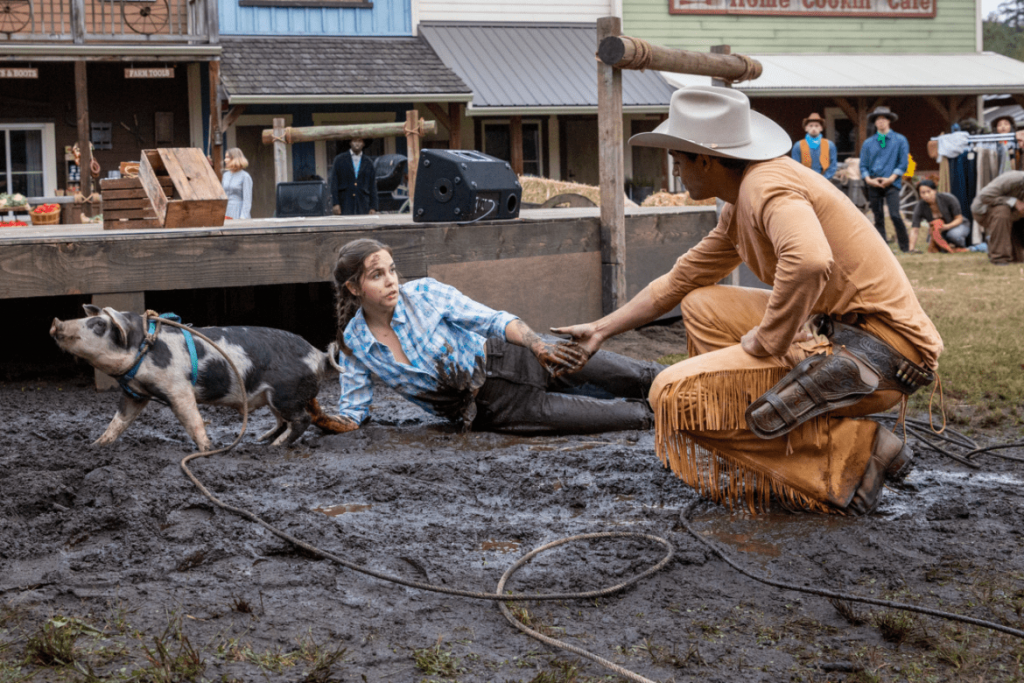 Хотя фильм переполнен отсылками к поп-культуре и TikTok, сюжет у него традиционный. Финли (Бейли Мэдисон), которая недавно потеряла любящего отца, самостоятельно отвечает за функционирование всей фермы. Мачеха и сводные сестра с братом совершенно бесполезны - они полностью зависят от нее. Финли не только готовит и убирает, а ещё и даёт дельные советы как следовать моде. За эти заслуги у нее «самая большая спальня из всех» - она спит на …улице в сарае рядом с лошадьми. Истерическая абсурдность сюжета - вот что делает его достойным просмотра. Как традиционная Золушка от Disney, Финли разговаривает с животными и мечтает стать успешной актрисой. К счастью, в их маленьком городке в Айдахо, собираются снимать кино и для постановки ищут местных актеров, чтобы пополнить актерский состав. И, как только Финли выполнит все дела по дому, великодушная Валериан разрешит ей пройти прослушивание вместе с семьей, за исключением Кале, который планирует стать менеджером ведущего актера Джексона Стоуна (Майкл Эванс Белинг). Чтобы прослушивание прошло успешно, Валериан требует от Финли, чтобы она отвела к мяснику своего любимого домашнего поросёнка по кличке Джон Хэм. Дабы этого не случилось, Финли берет поросёнка с собой на съемочную площадку, тот разрушает декорации, а режиссер-сексист Тревор (Мэтти Финочио) запрещает ей сниматься. Но девушка переодевается в парня и, под именем Гекльберри Финн (!), получает свою роль.