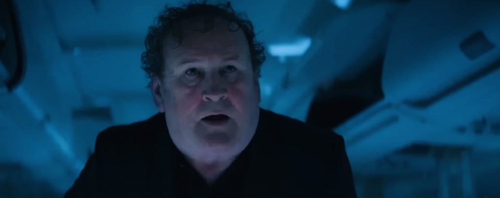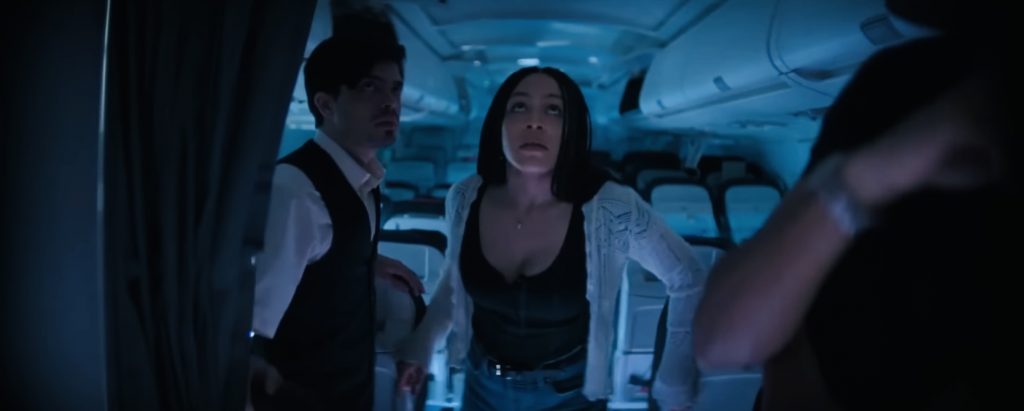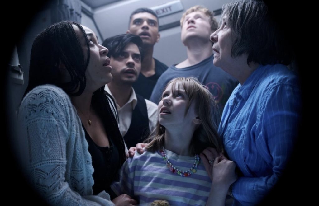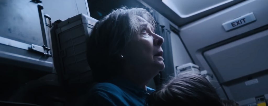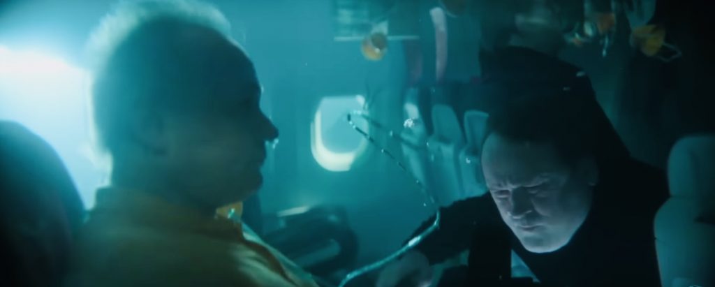 Все в фильме движется по укатанным тропам жанра: экспозиция, где герои беззаботно тусуются в аэровокзале перед полетом, пока мы с ними знакомимся, потом веселый взлет над океаном, пассажиры хрустят орешками с колой, шутники подкалывают терпеливого бортпроводника. А потом - главное, ради чего мы и пришли в кинозал: испытание нервов и экзамен для психики. В двигатель врезается стая птиц, он вспыхивает, и вскоре лайнер окажется в океанской пучине, качаясь на краю подводной скалы над пропастью. Салон будет мгновенно затоплен, и только в хвосте образуется воздушный пузырь, где и будут искать спасения немногие уцелевшие. Это главная героиня картины Ава (Софи Макинтош) с двумя приятелями, десятилетняя девочка с плюшевым медвежонком, ее бабушка (Филлис Логан из "Аббатства Даунтон"), тяжело переживающая гибель только что утонувшего супруга, бортпроводник (Мануэль Пасифик). И Брэндон (ирландский актер Колм Мини), телохранитель Авы, ибо она не только хороша собой, но еще и губернаторская дочка. Это последнее обстоятельство дает нам уверенность: если губернаторская дочка, то уж точно все силы города будут брошены на спасение исчезнувшего лайнера. Странная, конечно, но всем известная и каждому понятная закономерность.