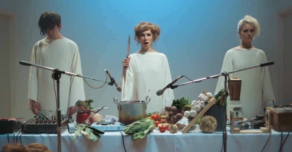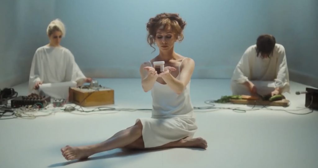 О ЧЕМ КИНО: в резиденцию Института звукового кейтеринга приезжает трио, занимающееся кулинарным диджеингом (это когда участники готовят прямо на сцене и записывают трек с использованием произведенных в процессе стуков и шумов). За общую концепцию и перформанс в труппе отвечает Элль (Фатма Мохаммед, актриса с характерной внешностью звезды джалло 70-х), за техническую часть - ее подкованные сотрудники Ламина (Ариана Лабед) и Билли (Эйса Баттерфилд). Резиденция вроде бы обещает гостям карт-бланш: четыре недели не стесненного финансовыми или креативными рамками творческого процесса. Но властная кураторка института (Гвендолин Кристи с черными кругами вокруг глаз, похожая на учительницу-доминатрикс) постоянно лезет с идеями и замечаниями, творческий коллектив распадается на глазах из-за внутренних конфликтов и личных проблем, а вокруг шмыгают мстительные музыканты, которых не взяли в этот творческий рай. Наблюдает за всем этим безвольный журналист-неудачник Стоунс (Макис Пападимитру), которого пригласили быть хроникером многообещающей кулинарной резиденции. По иронии судьбы он страдает от метеоризма и вынужден регулярно посещать хвастливого доктора Глока для проведения ряда медицинских процедур (в программе есть и колоноскопия)…