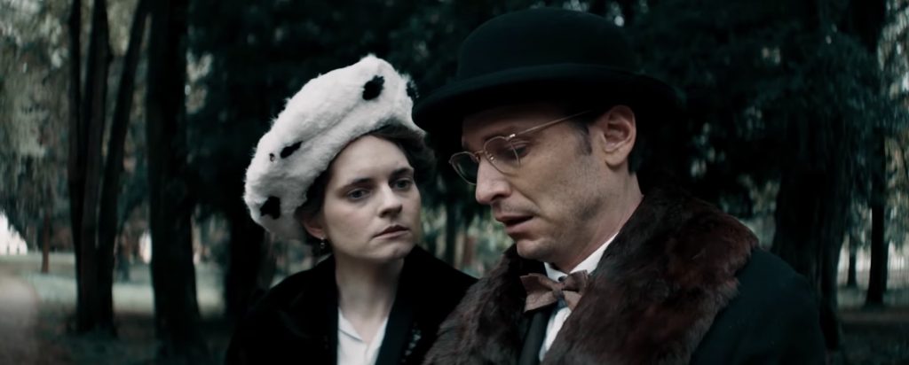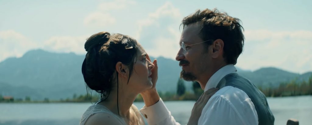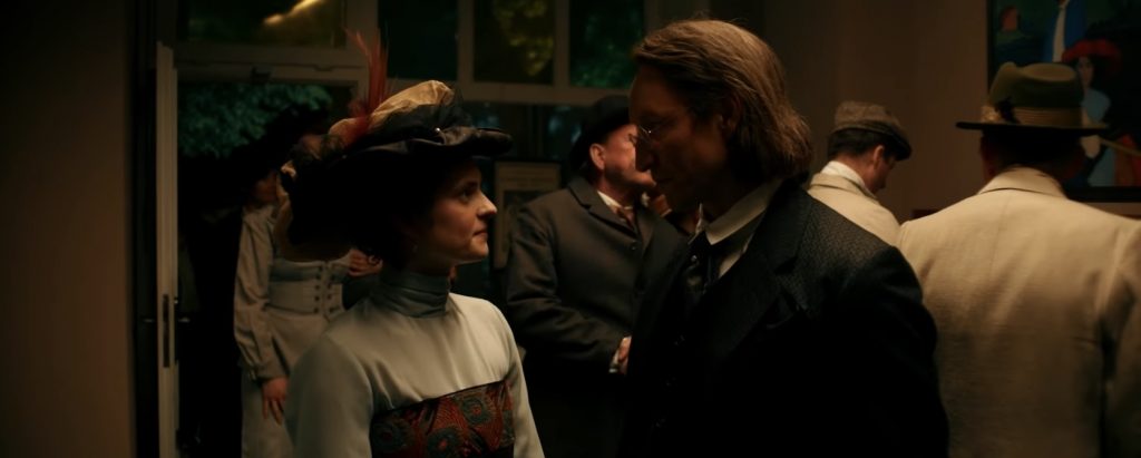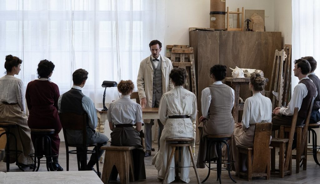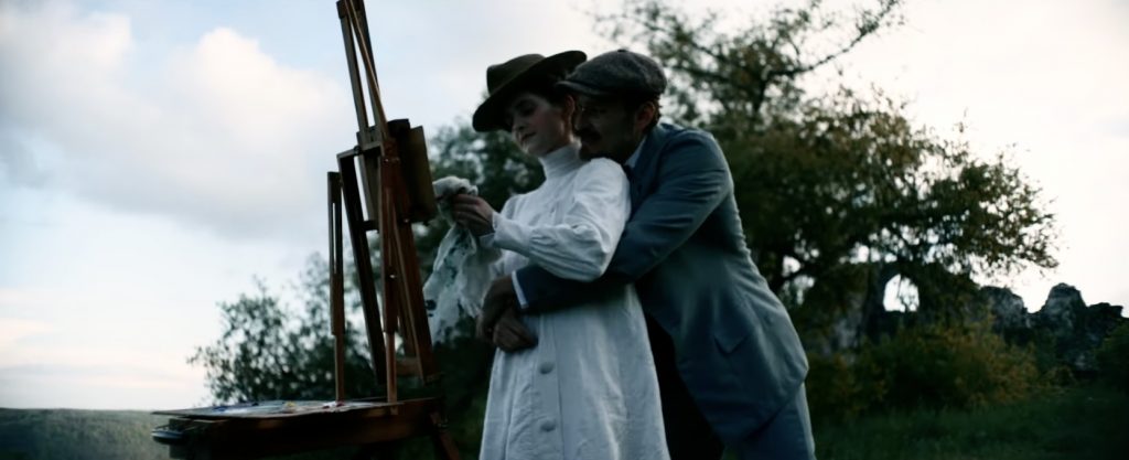 Подобно большинству биографических драм, «Кандинский и его муза» фиксирует на экране важные вехи в истории Василия и Эллы: знакомство и лето любви во Франции, членство в группе экспрессионистов «Новое мюнхенское художественное объединение», а после создание знакового объединения «Синий всадник», начало Первой мировой войны и конец романа, который так и не был зарегистрирован официально. Затрагивая ключевые годы из биографии художников, Розенмюллер рисует нелицеприятный портрет российского мастера, чье непредсказуемое поведение превратило вольную птицу в несчастную женщину. Режиссер, очевидно, принимает сторону Мюнтер, к которой несложно проникнуться сочувствием…(Гульназ Давлетшина)